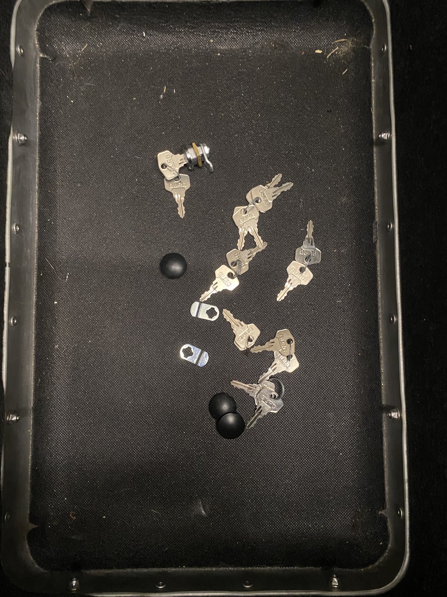 14 Schlüssel und ein Ersatzschloss sind dabei.