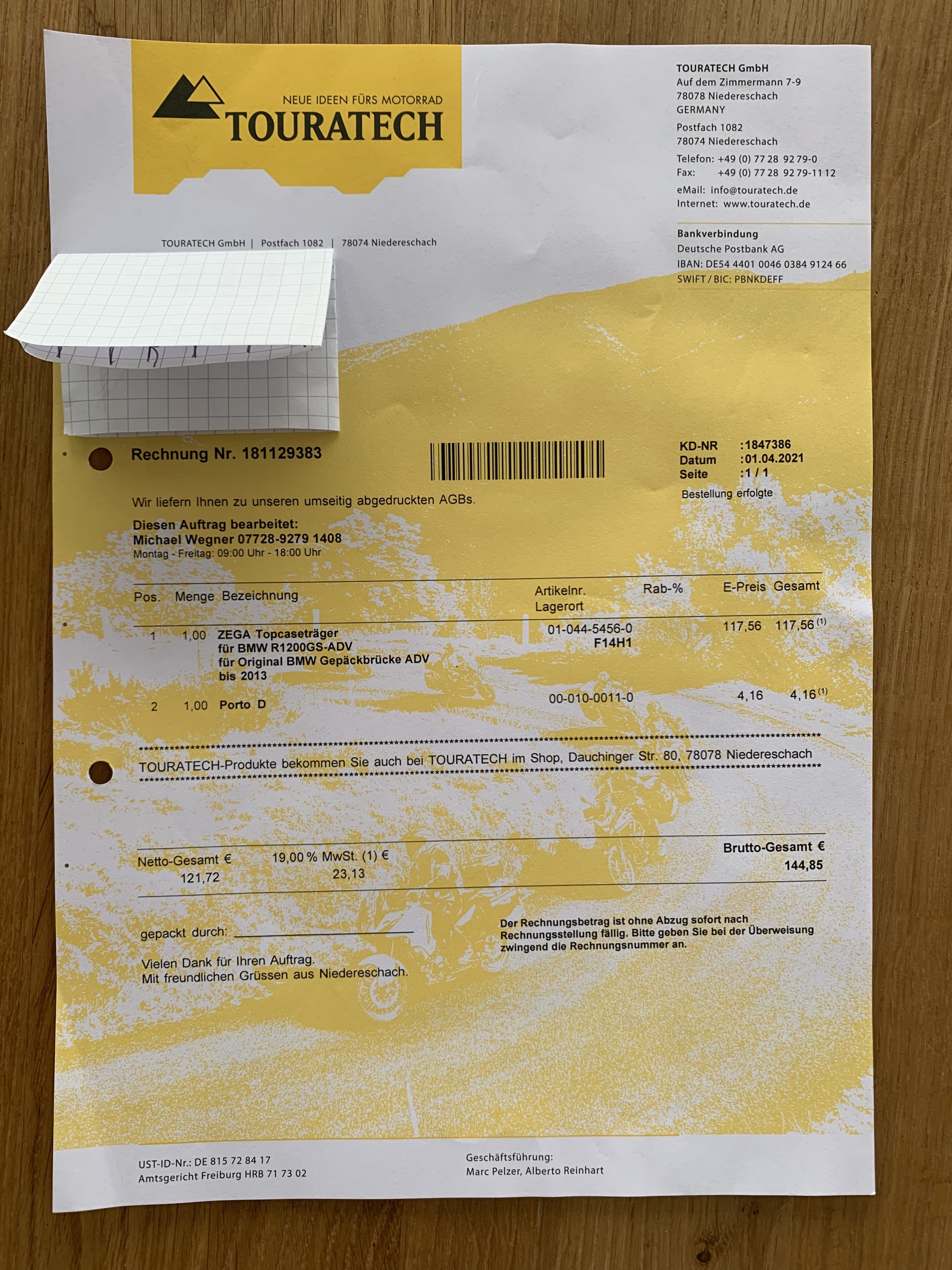 Neupreis war 144,85€, Rechnung anbei, siehe Photo.