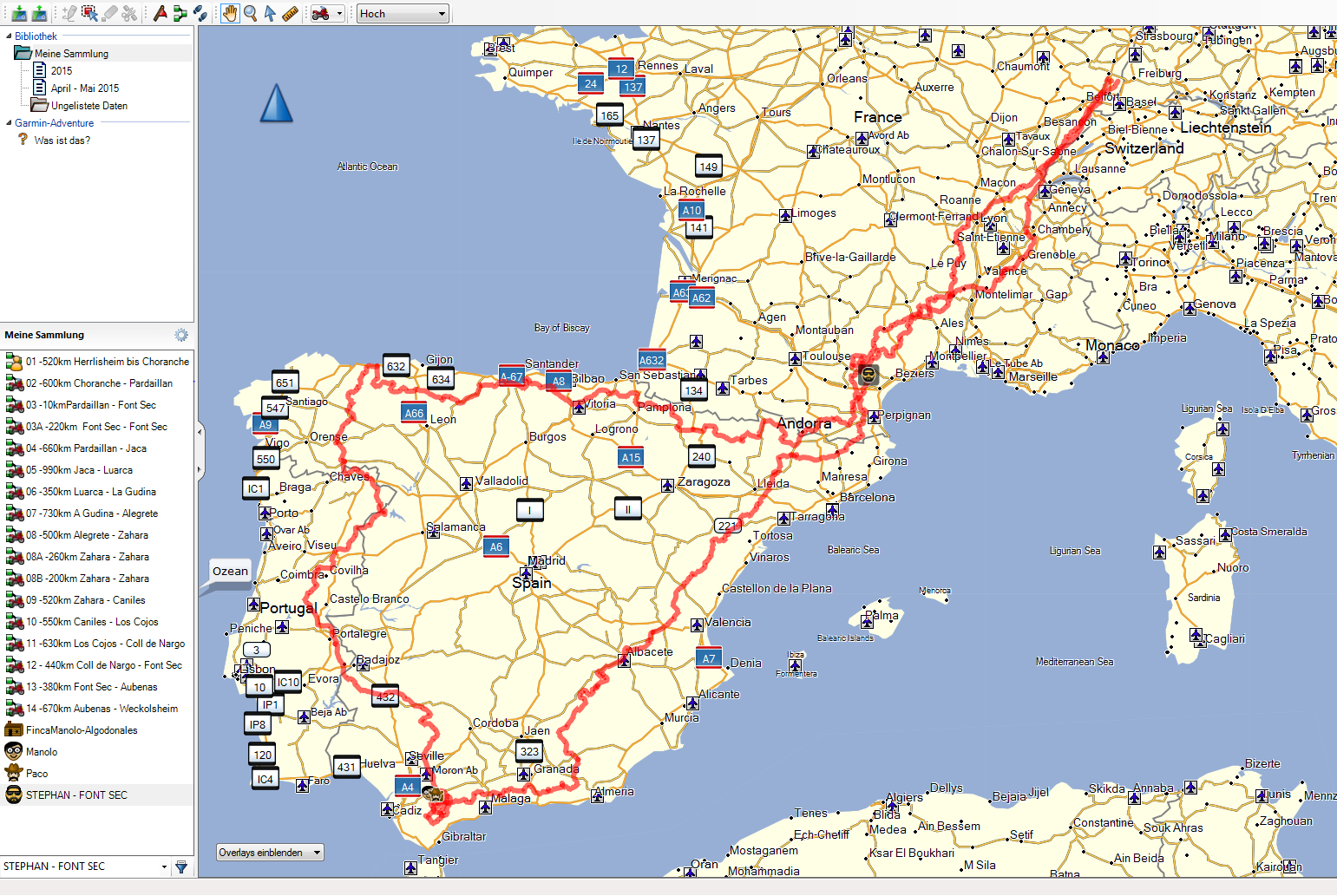 Habe das Ganze also auf 8250 km gekürzt. Hinweg einen "Pausentag" auf einer Ranch in Südfrankreich, 2 Tage in Andalusien Paco besuchen u. wieder 2 Tage bei meinem Jugendfreund in Südfrankreich, immer natürlich mit kleinen Touren in d. Region. Diese "Pausentage" sind gleichzeitig mein Puffer, fall´s irgendwas dazwischenkommt, denn Mo. wird zuverlässig u. pünktlich d. LKW gestartet !