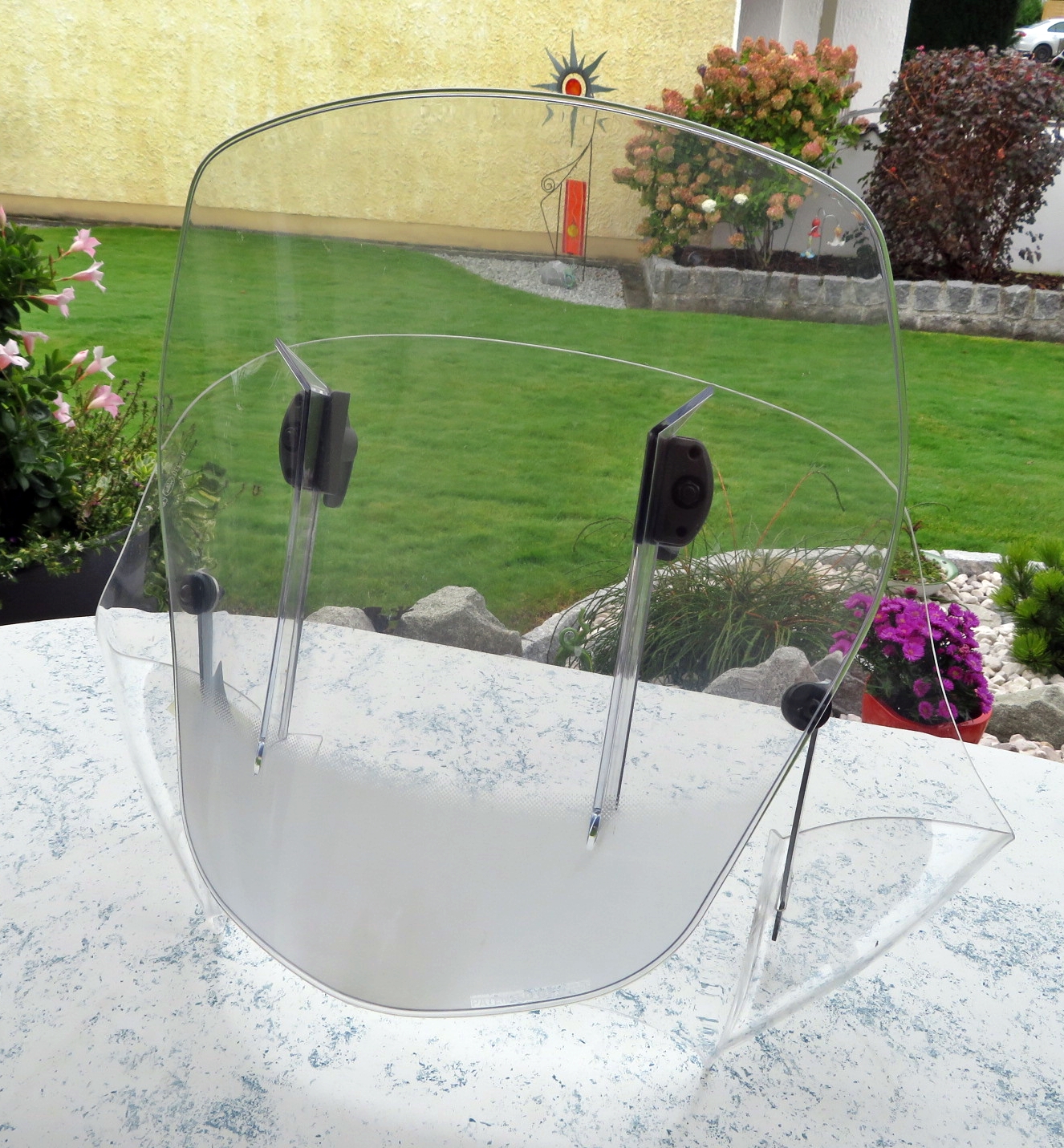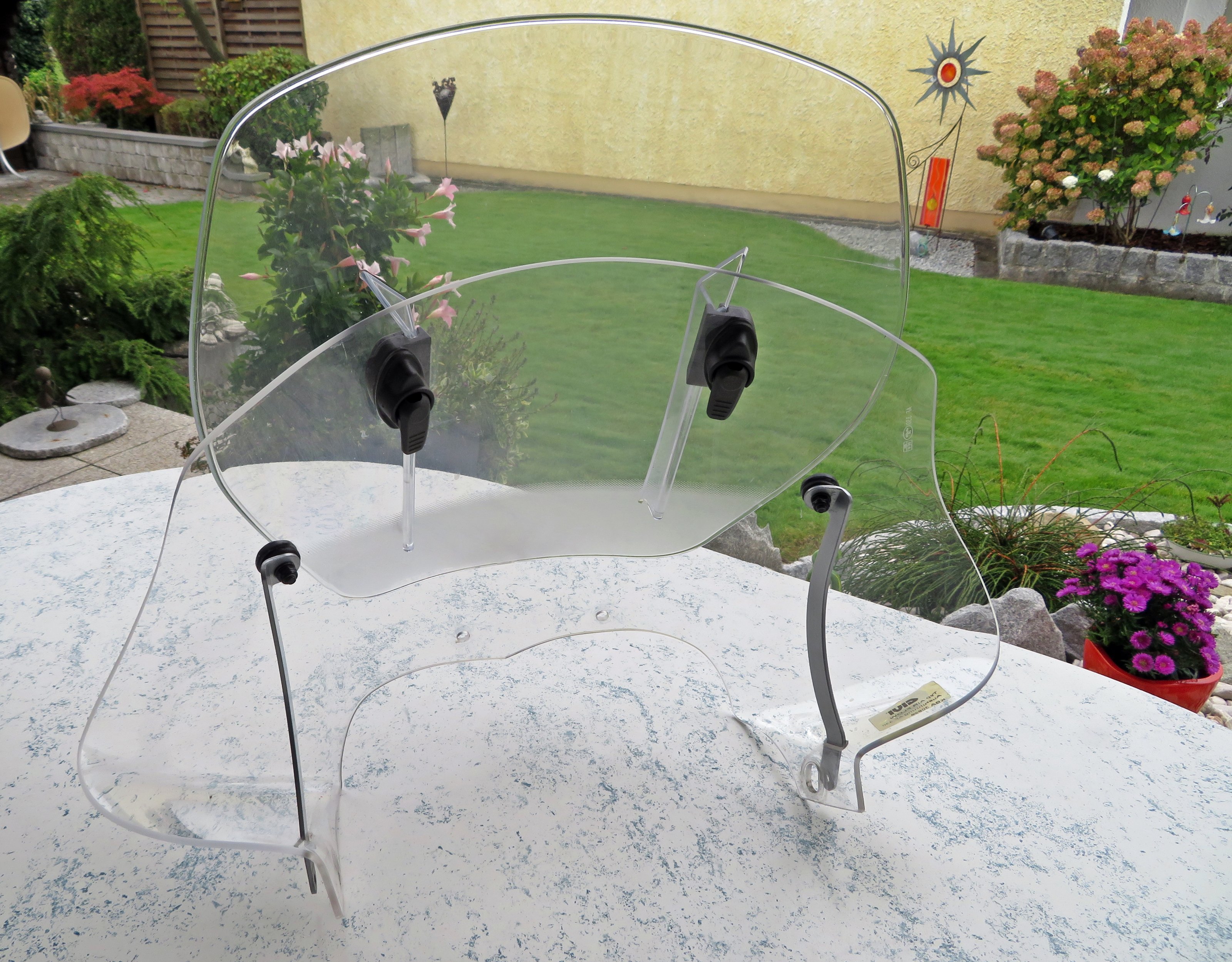 Nach vielen Versuchen war dies die einzige Scheibe, welche auf der GS funktioniert hat. Durch die variable Höhenverstellung kann die Scheibe jedem Fahrer und jeder Wetterlage angepasst werden. So habe ich die störenden Windgeräusche eliminiert. An heißen Tagen kann der vordere Teil der Scheibe einfach herausgezogen werden und schon hat man eine luftige Sportscheibe. Durch die zwei Metallstreben ist die Scheibe sehr stabil und flattert nicht. Normale Gebrauchsspuren. Sollte auf die Baujahre 2004 – 2012 passen.