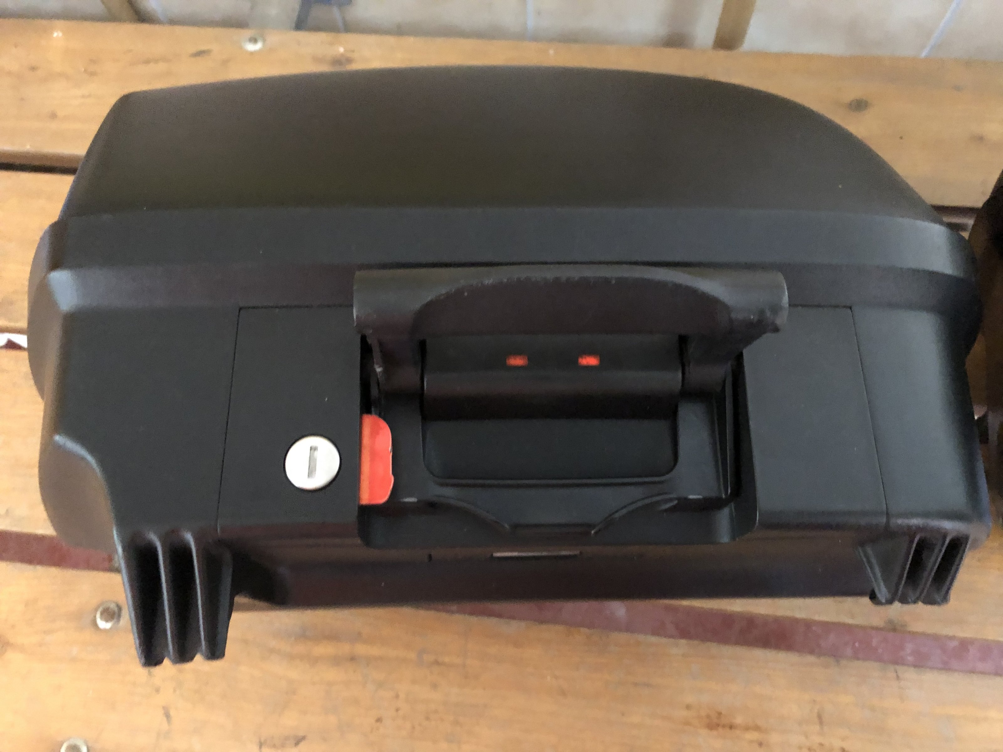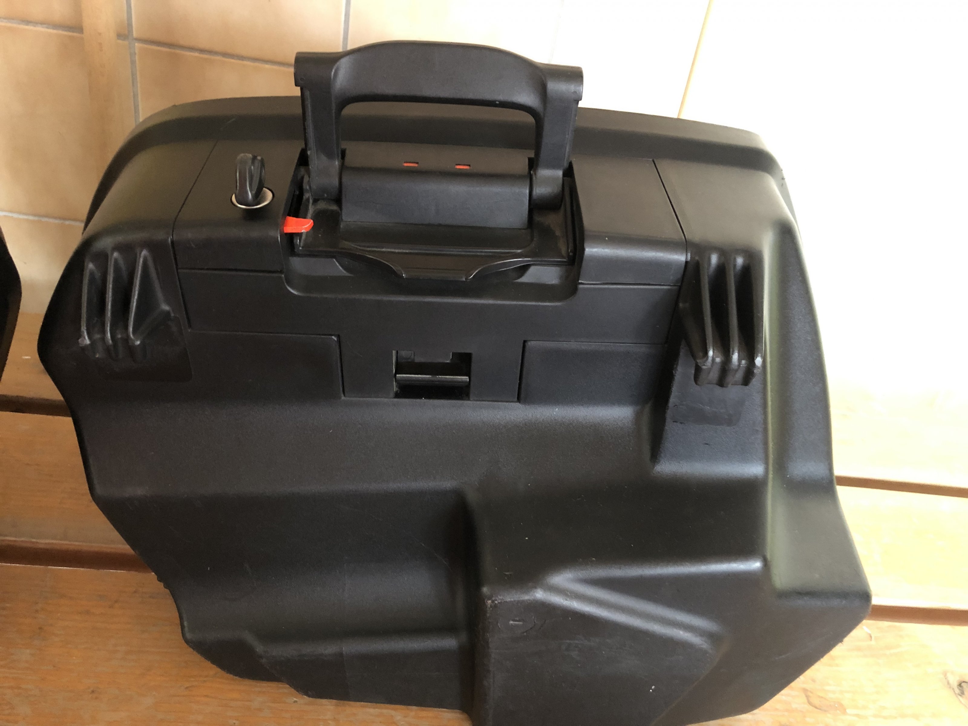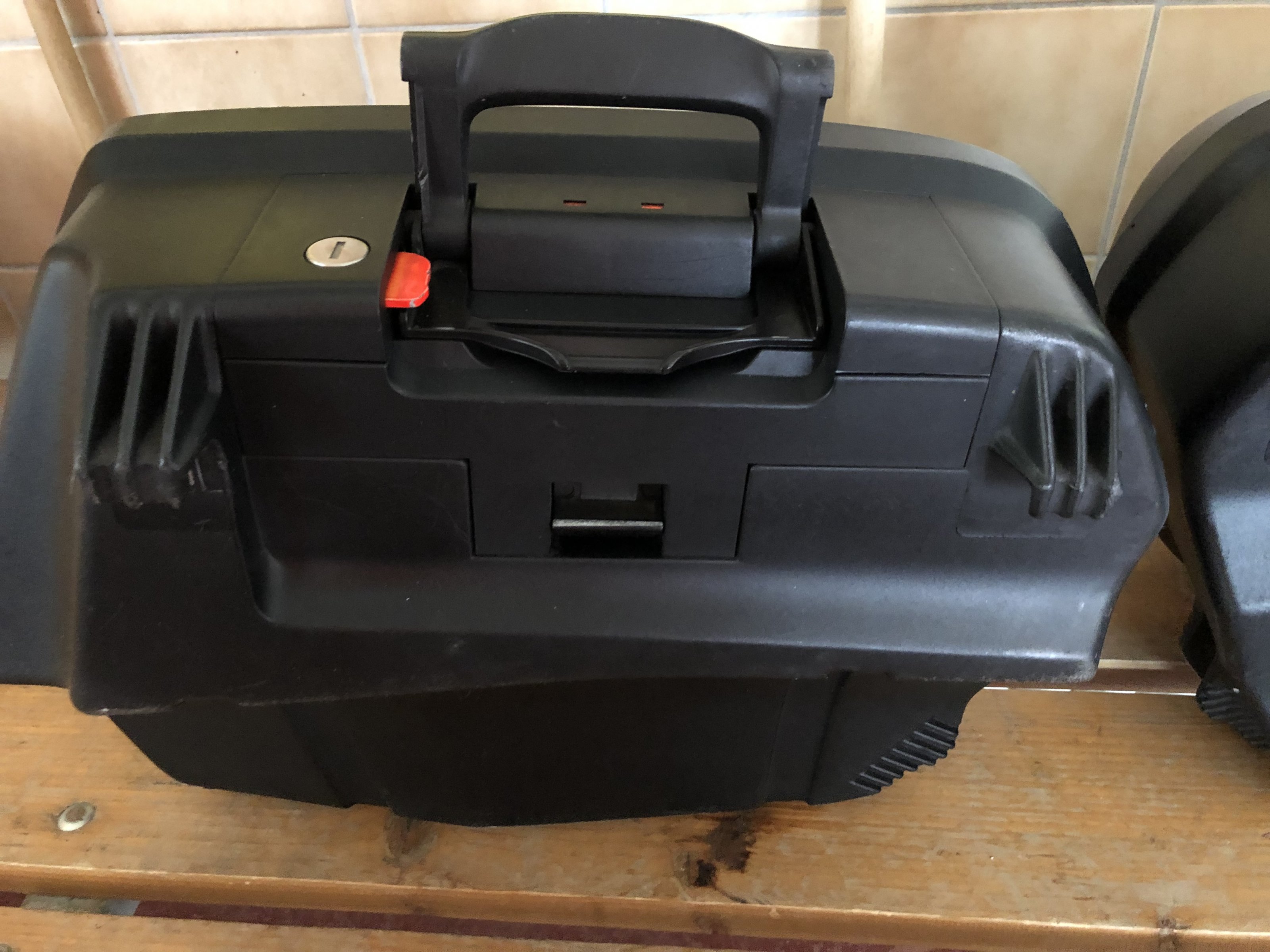 Die Koffer wurden wenig benutzt, und haben ein paar Spuren vom Garagenregal und vom letzten Umzug sowie links einen Kratzer von einem Umfaller im Stand und rechts verursacht durch einen netten Autofahrer beim Ausparken. Den rechten Koffer hat seine bessere Hälfte mal mit Gewalt versucht zu verriegeln und dabei einen Teil vom roten Sicherungsplättchen abgebrochen (siehe Bild 8). Schließt und funktioniert dennoch problemlos! Wen es trotzdem stört, eine Multifunktionsbox und wird in der Bucht immer mal um die 20€ angeboten. Den Rest bekommt man ohne großen Aufwand mit Kunststoffpflege wieder hübsch.