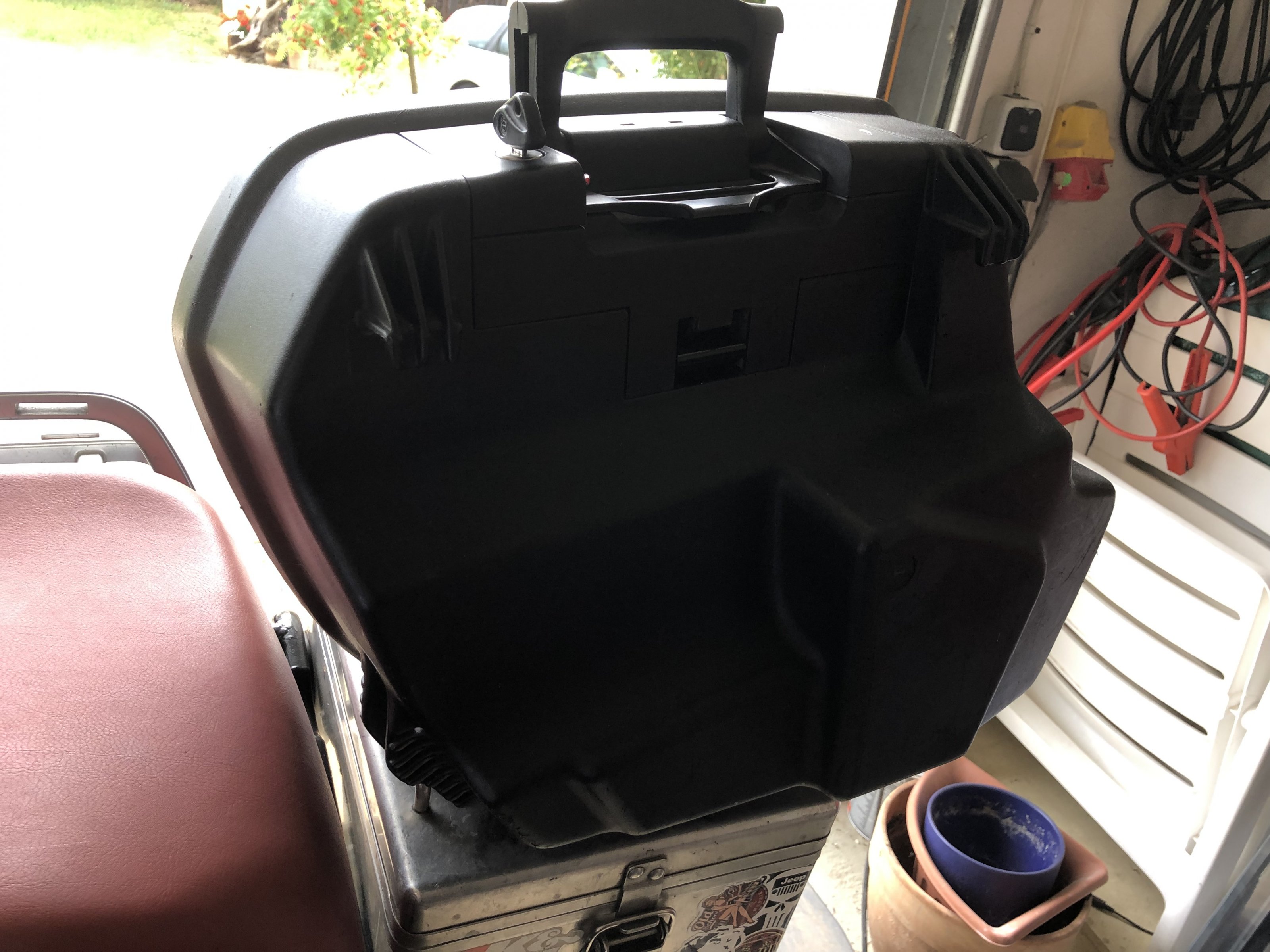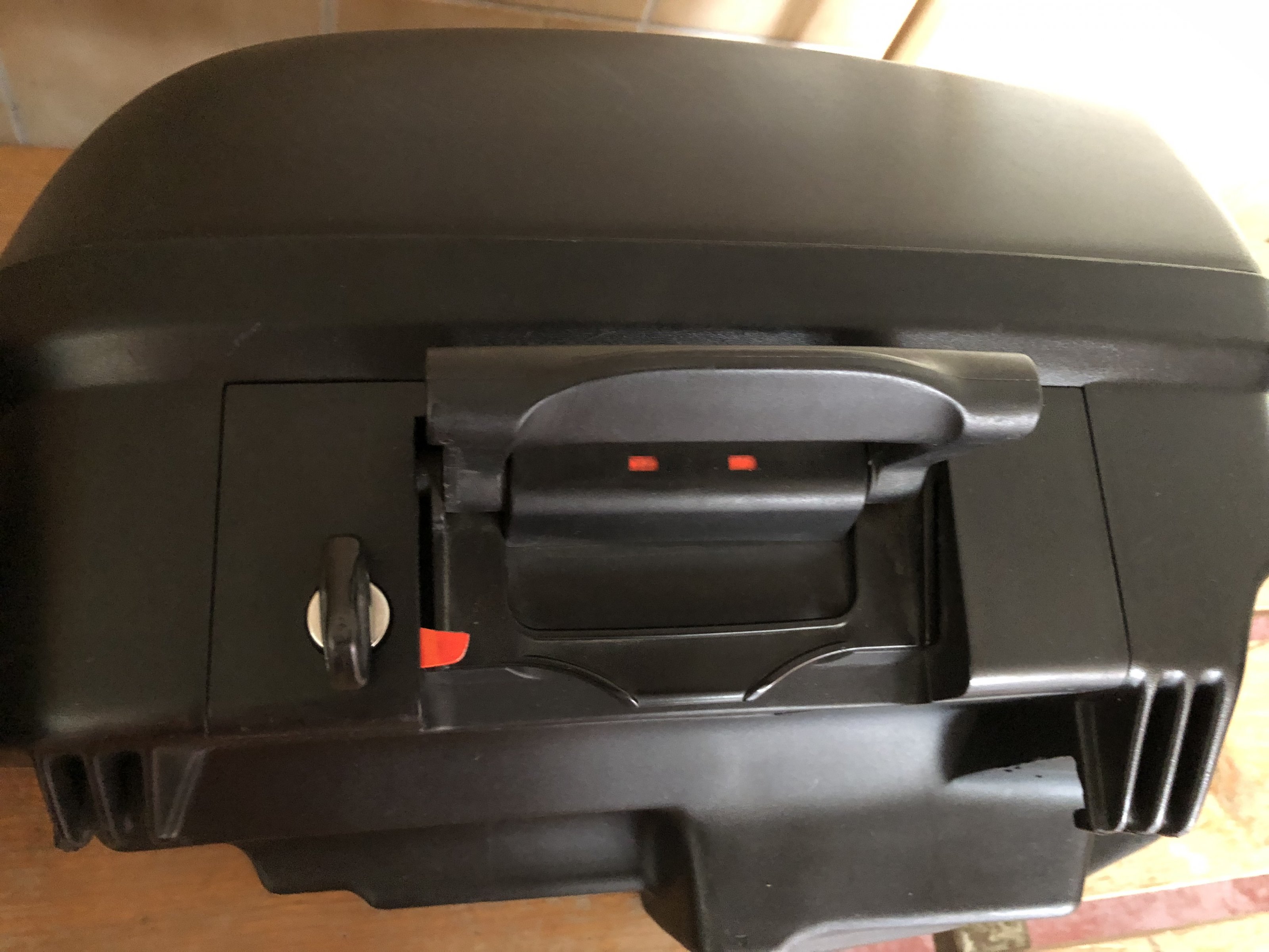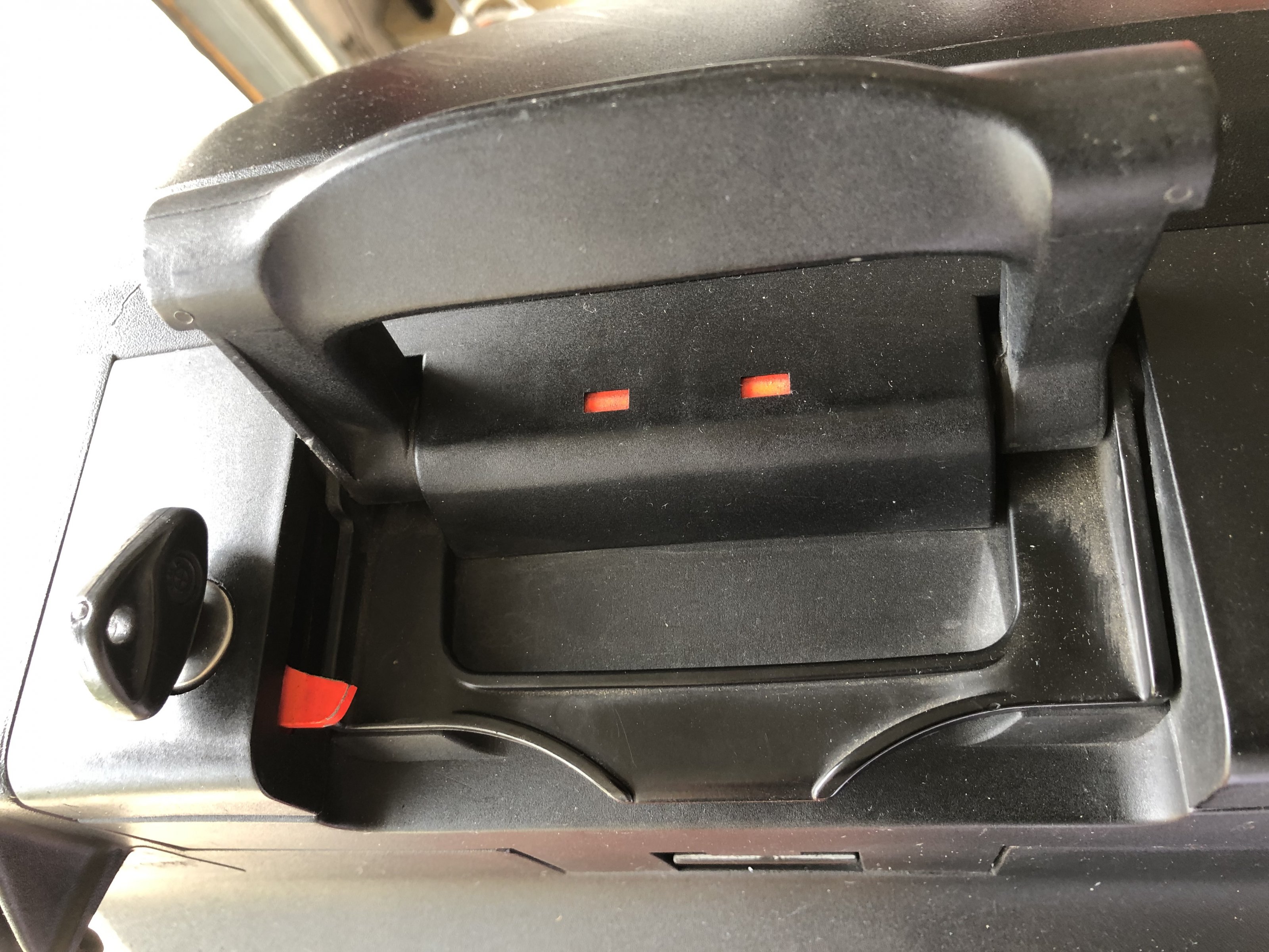 Die Koffer wurden wenig benutzt, und haben ein paar Spuren vom Garagenregal und vom letzten Umzug sowie links einen Kratzer von einem Umfaller im Stand und rechts verursacht durch einen netten Autofahrer beim Ausparken. Den rechten Koffer hat seine bessere Hälfte mal mit Gewalt versucht zu verriegeln und dabei einen Teil vom roten Sicherungsplättchen abgebrochen (siehe Bild 8). Schließt und funktioniert dennoch problemlos! Wen es trotzdem stört, eine Multifunktionsbox und wird in der Bucht immer mal um die 20€ angeboten. Den Rest bekommt man ohne großen Aufwand mit Kunststoffpflege wieder hübsch.