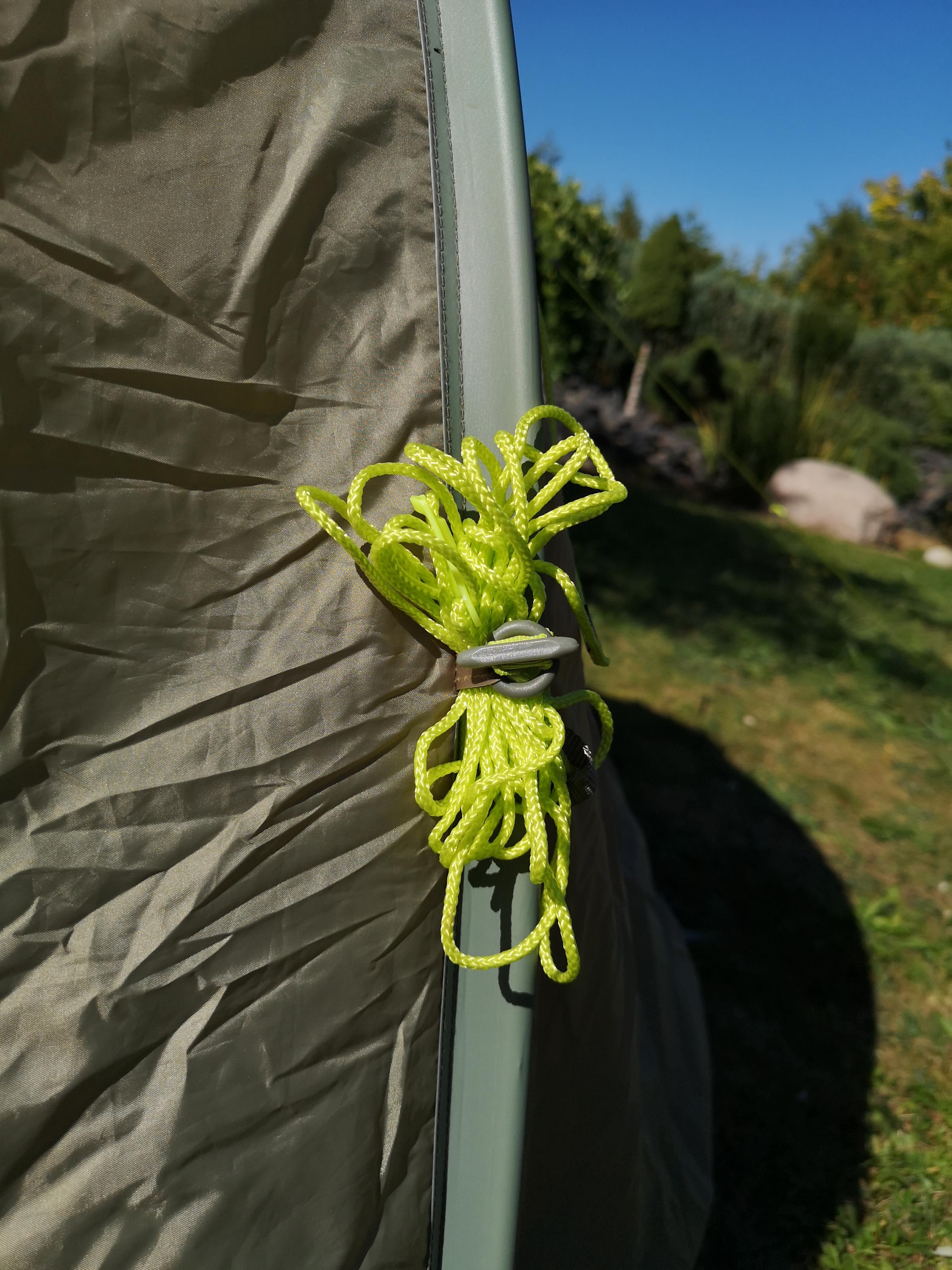 Praktische Aufbewahrungsbefestigung der Abspannleinen zum Verpacken