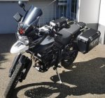 Sehr guter Zustand, und viel Ausstattung: Alukoffer SW-Motech Trax mit Quicklock Halter, originale SW-Motech Kofferinnetaschen, neuwertig, großes SW-Motech Touren Windschild, Originalscheibe auch noch dabei, Sturzbügel, Quicklock Adapter für Tankrucksack (ohne Tankrucksack), Kurze Kupplungs- und Bremshebel V-Trek mit ABE, Scottoiler mit Zusatzreservoir für große Touren, Wilbers Federbein verstellbar, Heizgriffe, Halterung für Navi über den Armaturen, Hinterreifen 50%, Vorderreifen 70%.