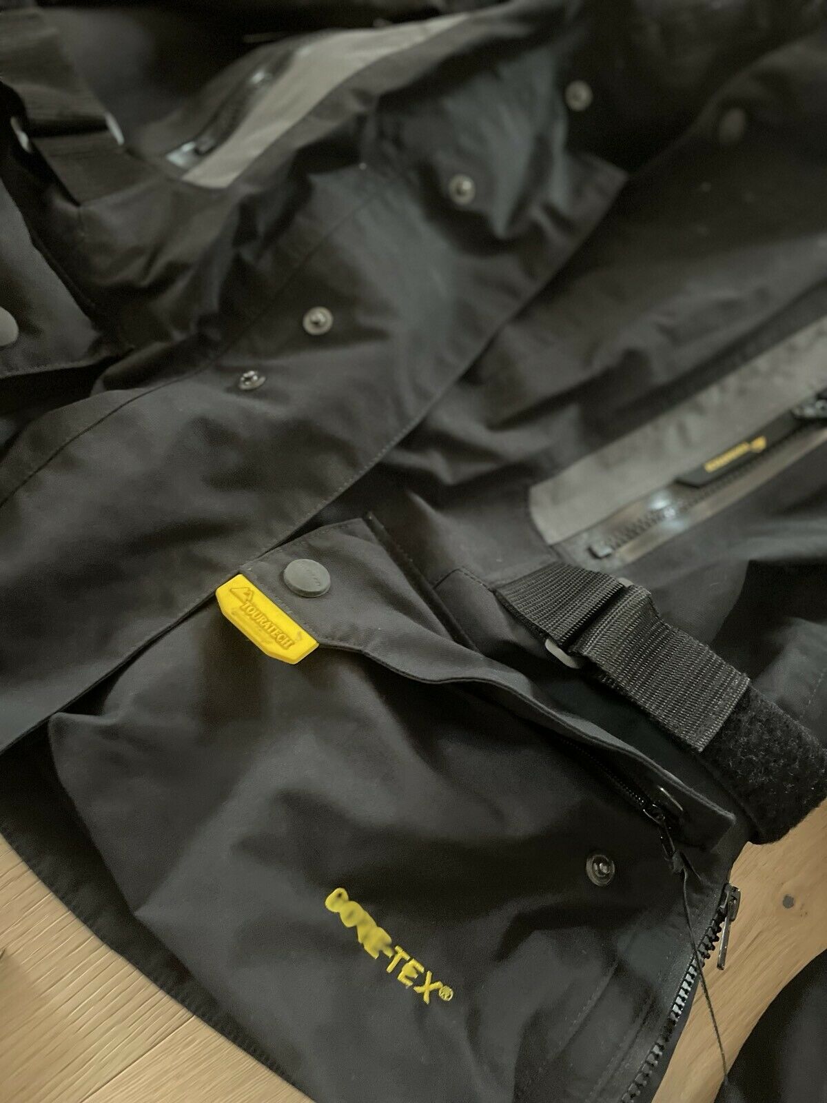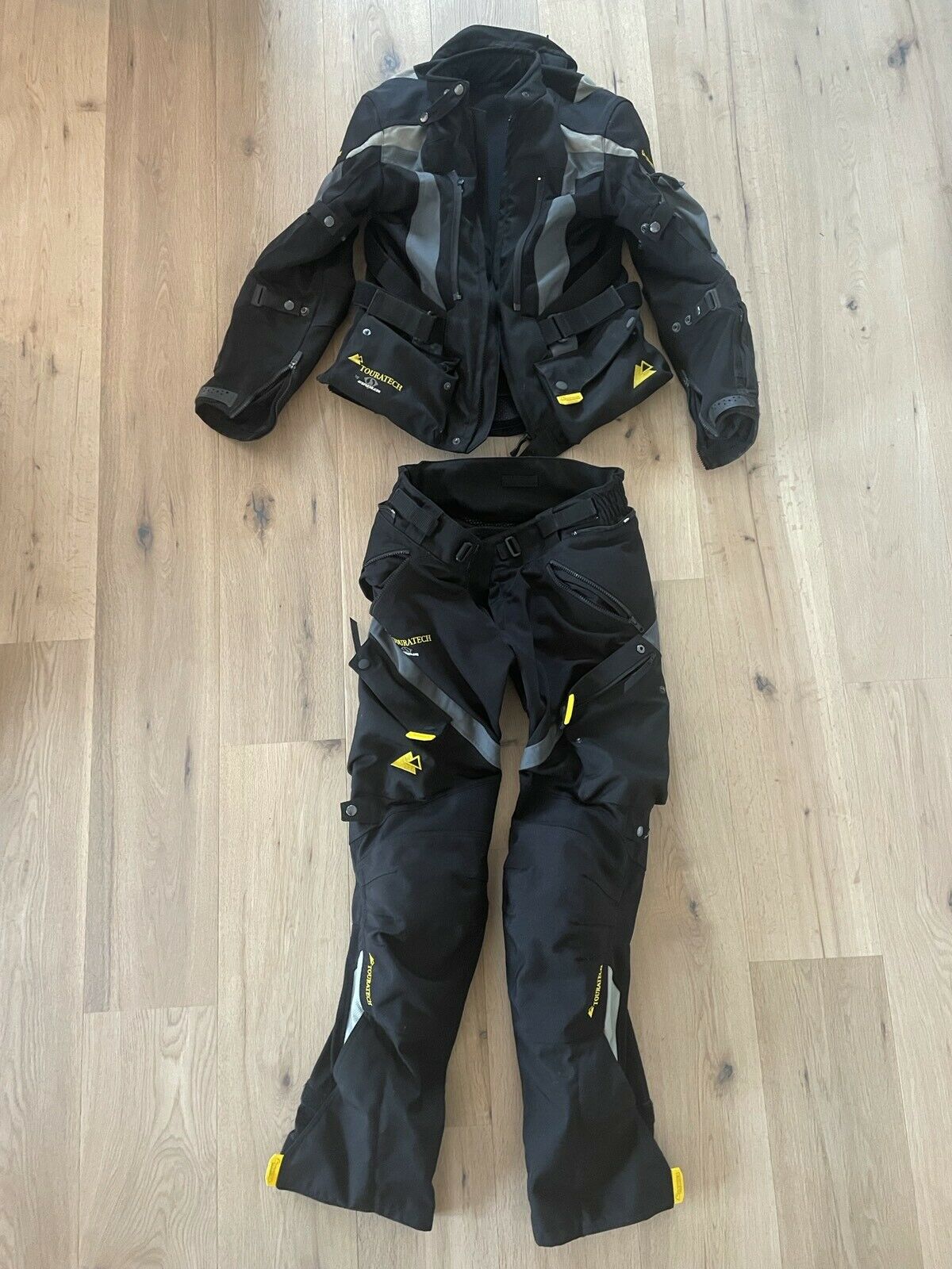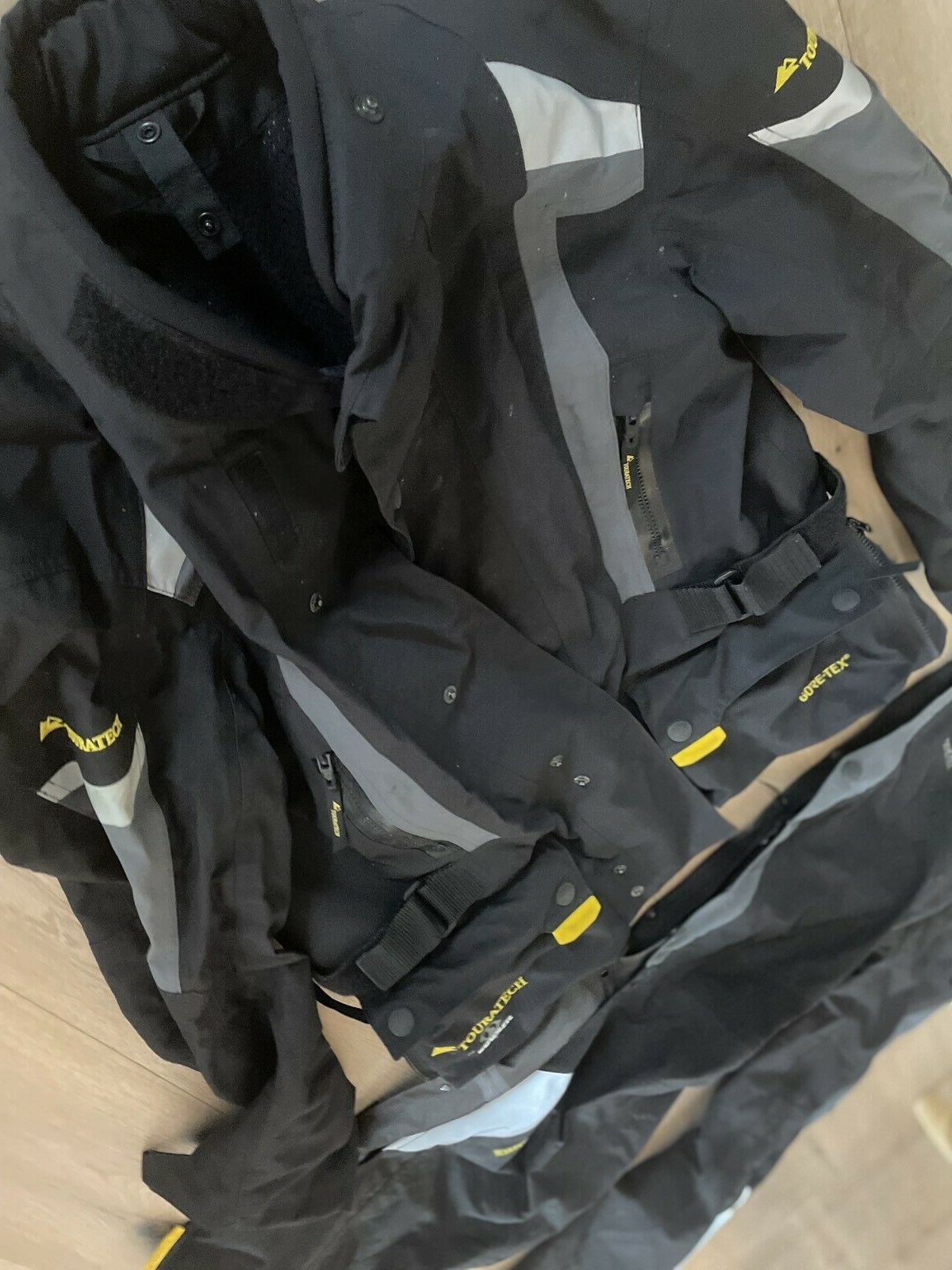 Im Angebot ist sowohl der seeehr luftige Summeranzug als auch der zweite GoreTex-Anzug (Rain/Weather) den man darüber zieht. Beide Anzüge sind mit Reißverschluss miteinander kombinierbar. Protektoren sind natürlich auch alle vorhanden.