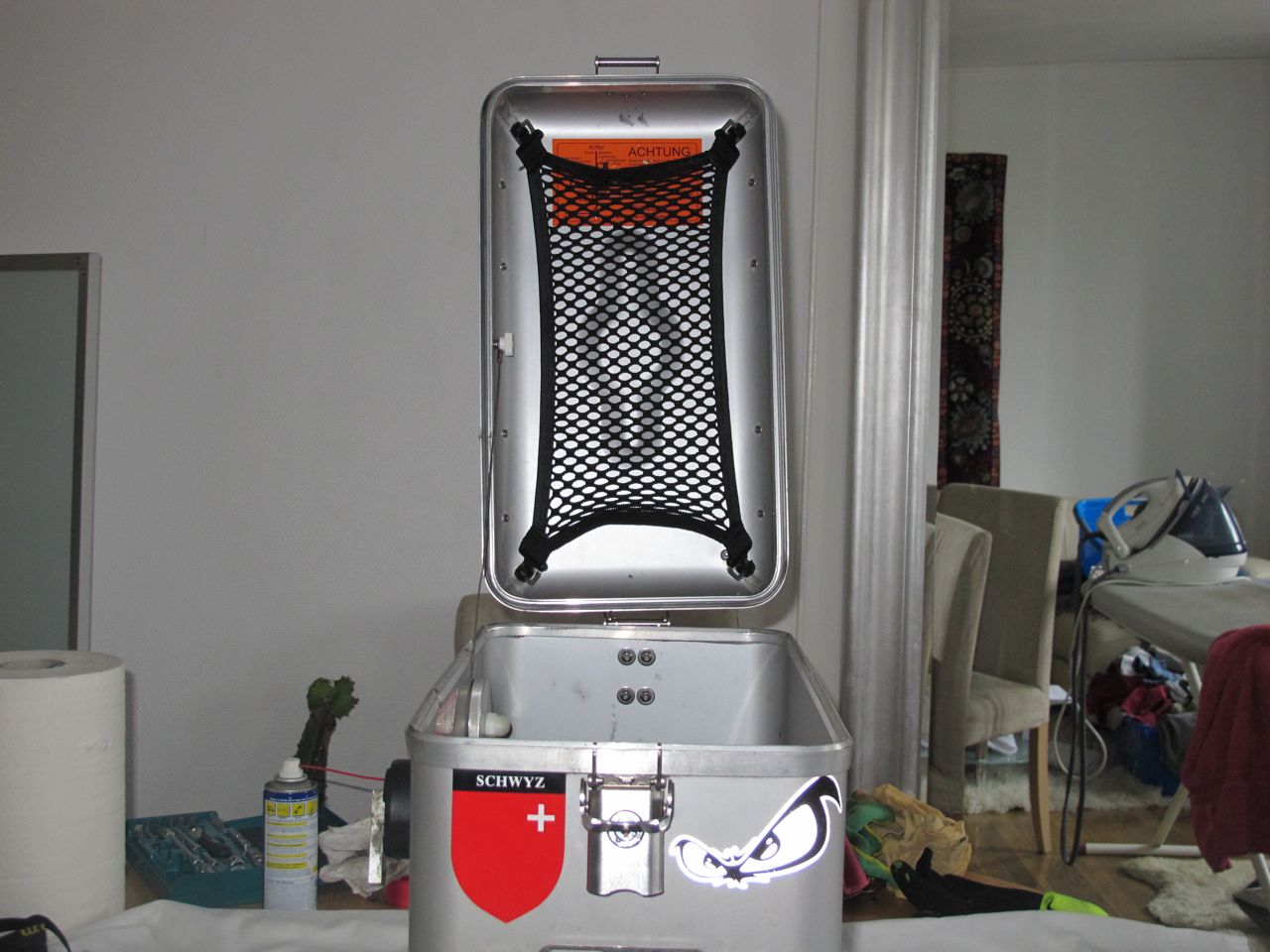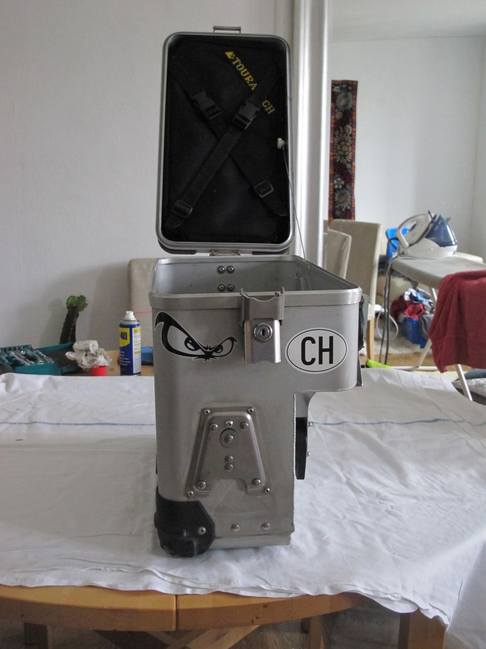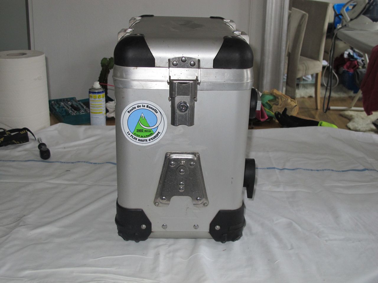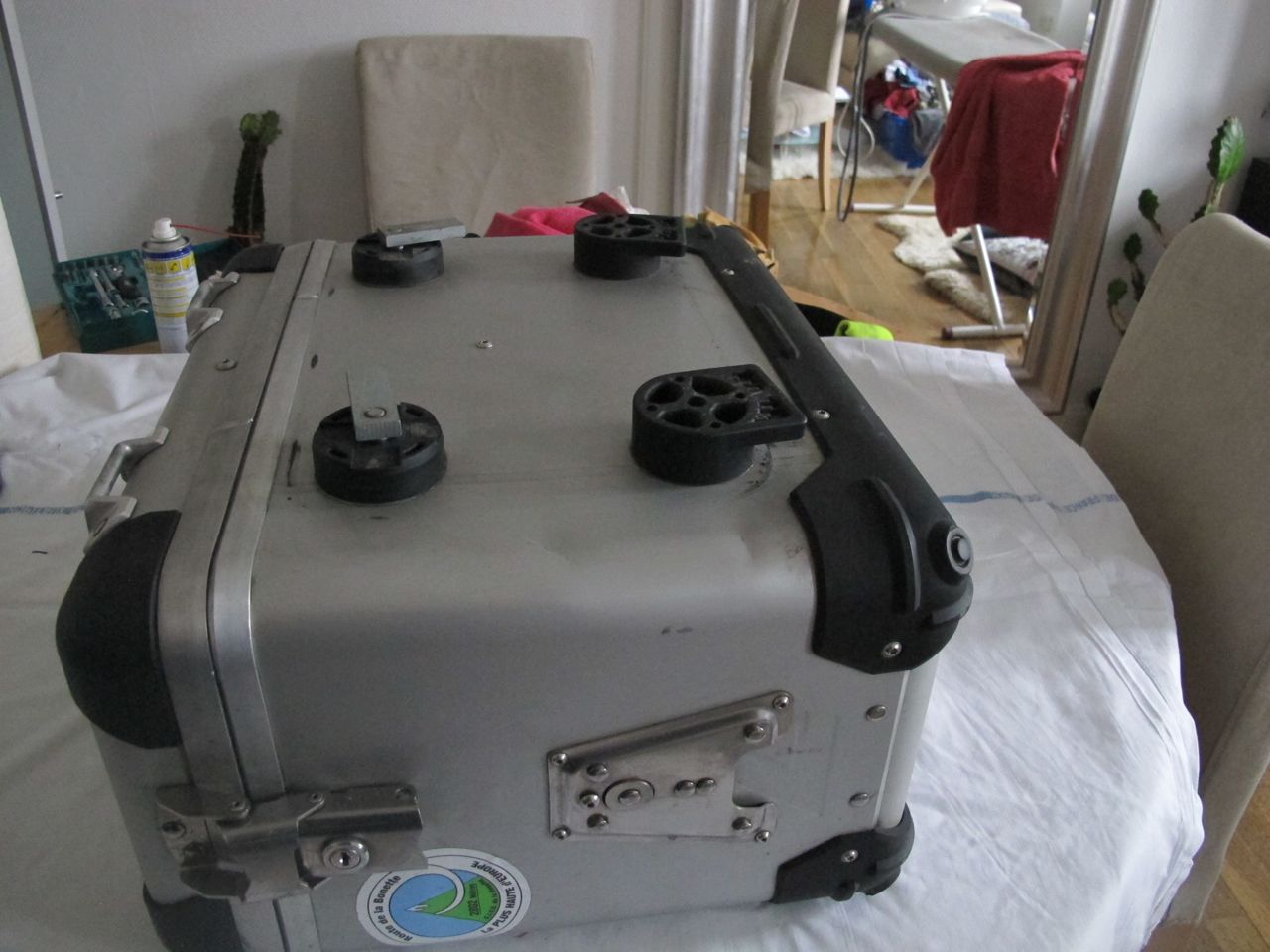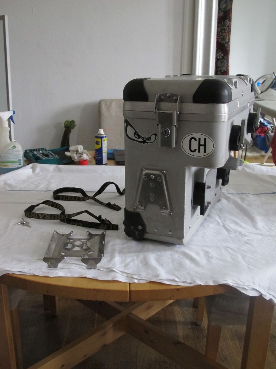 Koffer sind absolut dicht und mit Schloss (4x) ausgestattet, ein Schlüssel passt für alle. Verbaut sind an jedem Koffer vorne und hinten eine Grundplatte. Für hinten gibts den doppelten Flaschenhalter und eine Universalplatte mit Abstützwinkel (2 Befestigungsriemen je Platte).