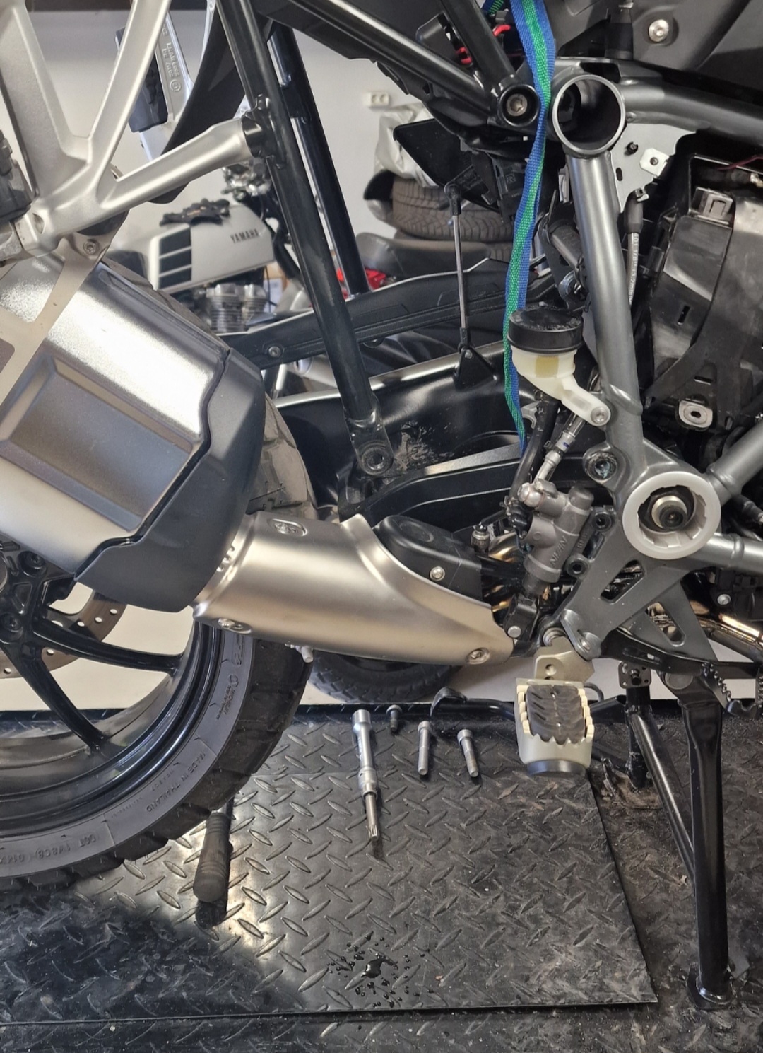 Nun wieder stärkere Feder von Hyperpro wird eingebaut. Meine alte K50 hätte auch eine nur in lila Farbe. Dises mal mache ich die nur für hinten, forne originale Feder macht alles richtig
