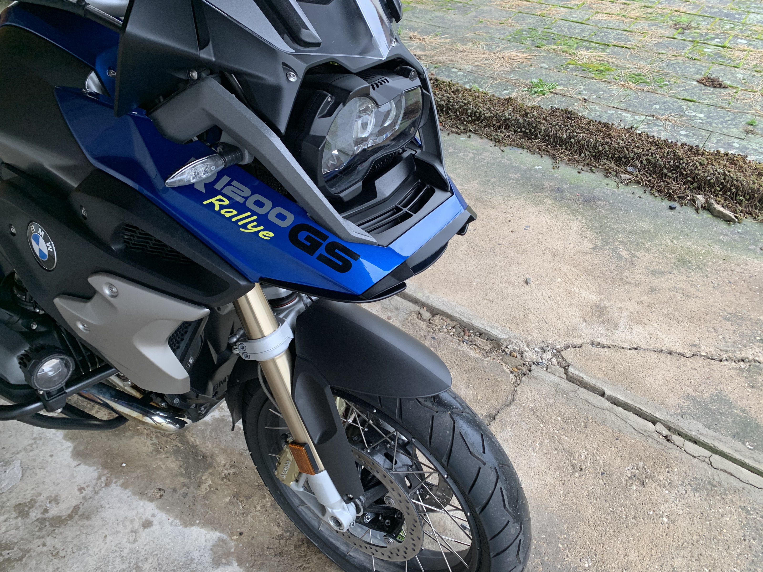 Der kurze Schnabel selber, der geschlitzten Blende mit Lufttrichter zur Niere und der Blende der Adventure unter dem Scheinwerfer.