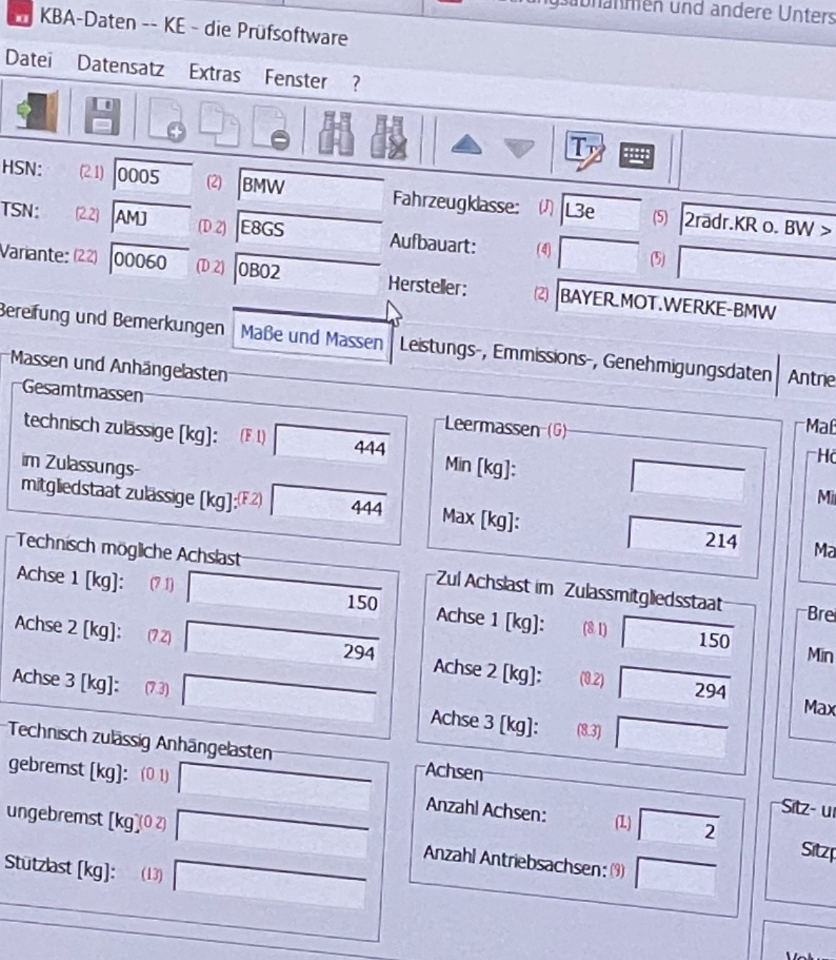 meine Frau hat sich diese Woche eine F650 GS aus 2011 gekauft, wobei jetzt einige Unstimmigkeiten aufgefallen sind. Das Motorrad wurde als gedrosselt verkauft, da man aber die Gänge voll ausfahren kann habe ich zuerst mal am einen Begrenzer am Gasgriff gesucht und bin danach mal auf due Autobahn. Das GPS hat mir gestern 193 km/h verraten, also nicht gedrosselt. Dier Eintragung im Fahrzeugschein zur Drosselung fand ich verwirrend und da ja auch die volle Leistung eingetragen ist. Heute bei einer techn. Prüfstelle wurde einmal in die KBA Datenbank geschaut. Uns wurde gesagt, das dies keine Drosselung, sondern eine Leistungssteigerung (bedeutet das einfach nur Entdrosselung?) war. Es soll auch eine Einzelabnahme gegeben haben, da unter Feld 16 eine WC Nummer angegeben ist. Was, wieso, weshalb...keine Ahnung. Im Abgleich mit der KBA Datenbank ist jetzt noch herausgekommen, das die Achslasten unter 7.2 und 8.2 abweichend vom Fahrzeugschein sind, wodurch wir jetzt etwas Bauchschmerzen haben. Unterlagen haben wir nicht weiter vom Verkäufer bekommen und bei BMW ist zwecks Datenschutz keine Hilfe zu erwarten. Wenn die Angaben im Fahrzeugschein nun falsch sind, wir bei der Behörde dennoch neue Papiere erhalten....was ist im Falle eine Unfalls, wenn die Daten überprüft werden. Es wäre doch jetzt mit Kanonen auf Spatzen geschossen, wenn man ein Gutachten erstellen lässt ?!? ...mal ganz abgesehen von den Kosten, die nicht eingeplant sind. Welche Werte stehen denn bei euch unter 7.2 und 8.2 ? Über einen Rat und Vorschläge zur weiteren Vorgehensweise wären wir dankbar.