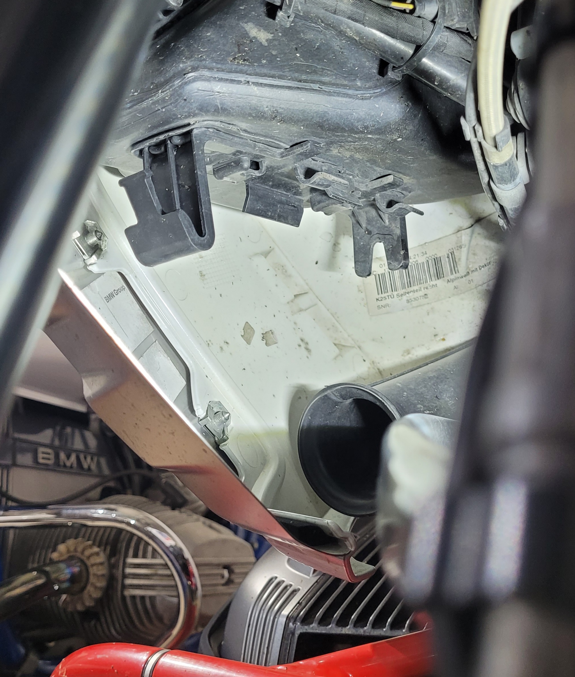 Hat jemand schon mal diesen Raum unter dem eigentlichen Tank oberhalb des Ansaugschnorchels, wo bei US-Modellen ein Aktivkohlefilter sitzt, für z.B. Zusatzwerkzeug nutzbar gemacht? So etwa eine 0,33-Dose dürfte da gut hinpassen. Und wenn man sich die vorhandenen Halter nutzbar machen würde, dann könnte man es auch recht einfach befestigen und wieder abnehmen, ohne daß man die Tankverkleidungen abnehmen muß.