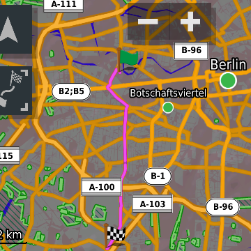 Meine Aussage bezog sich auf die auf dem Zumo XT vorinstallierten Garmin-eigene TopoActive Karten. Wenn nur die und keine andere Karte an ist, wird zwar auch eine Route erstellt, aber eine, die sich nicht an Straßen und Wegen orientiert. Schaltet man dann die anderen Garmin-Karten zu, wird eine vernünftige Route erstellt. Hier ein Beispiel für 2 zufällig gewählte Punkte in Berlin: