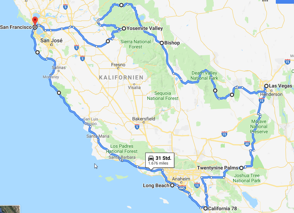 wir haben den Boxer für 12 Tage gegen einen V2 getauscht. Ende Mai ging es von San Francisco am Pazifik entlang nach Süden auf dem Highway Number 1 bis nach Los Angeles. Von dort durch die Mojave-Wüste nach Las Vegas und bei 47 Grad durch das Death Valley. Der Tioga Pass (3031 m) in der Sierra Nevada war am nächsten Tag wegen Schnee gesperrt, Ausweichroute über den Sonora Pass (2933 m) in den Yosemite National Park und zurück nach San Francisco. Es war ein heißer Ritt mit grandiosen Landschaften. Hier ein paar Fotos: