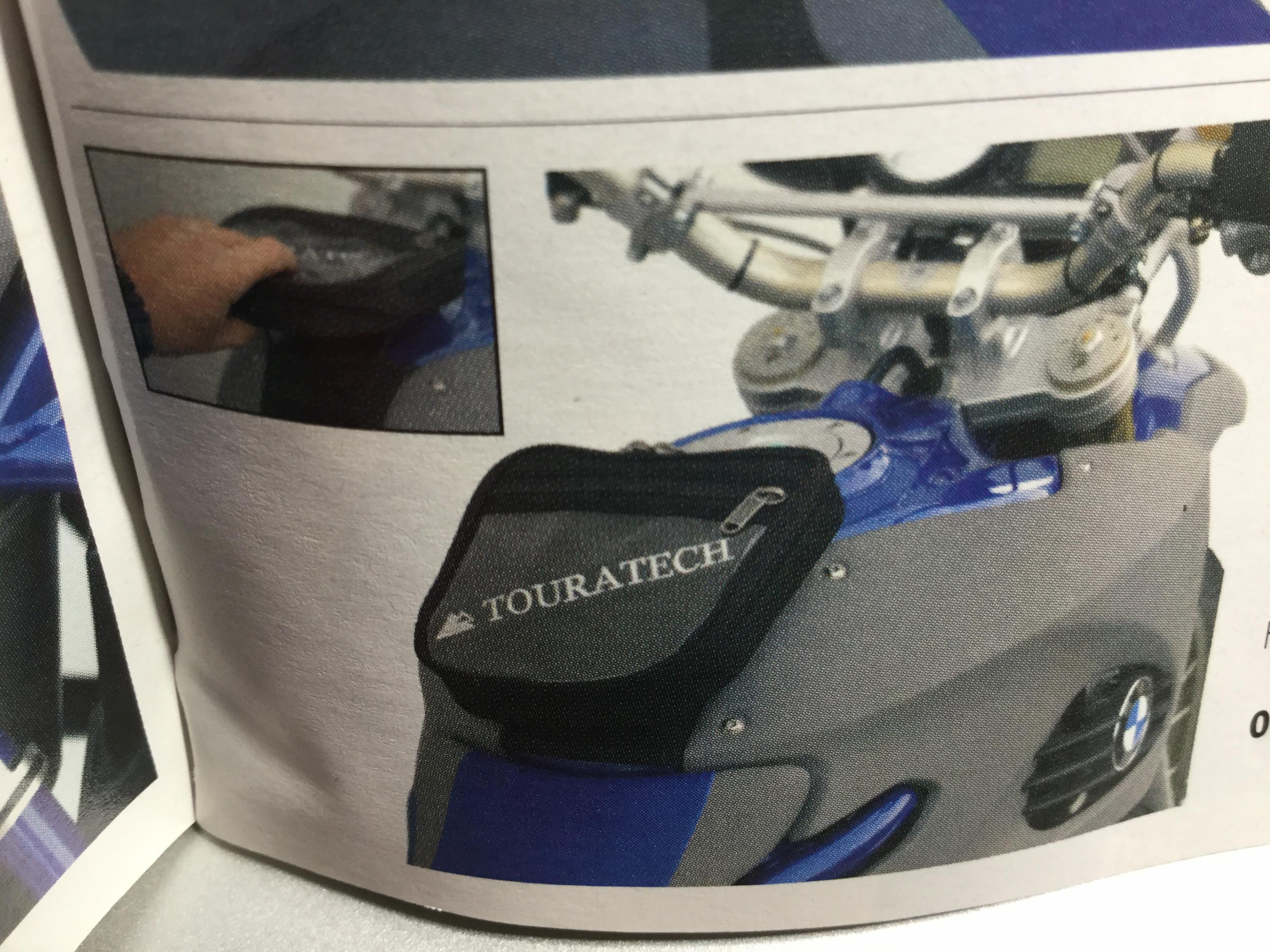 Die Grundplatte wird einfach mit der Tankblende über die Originalbohrungen verschraubt. Die Tasche wird mit der Kunststoffzunge in die Grundplatte eingesteckt und über Klett fixiert.
