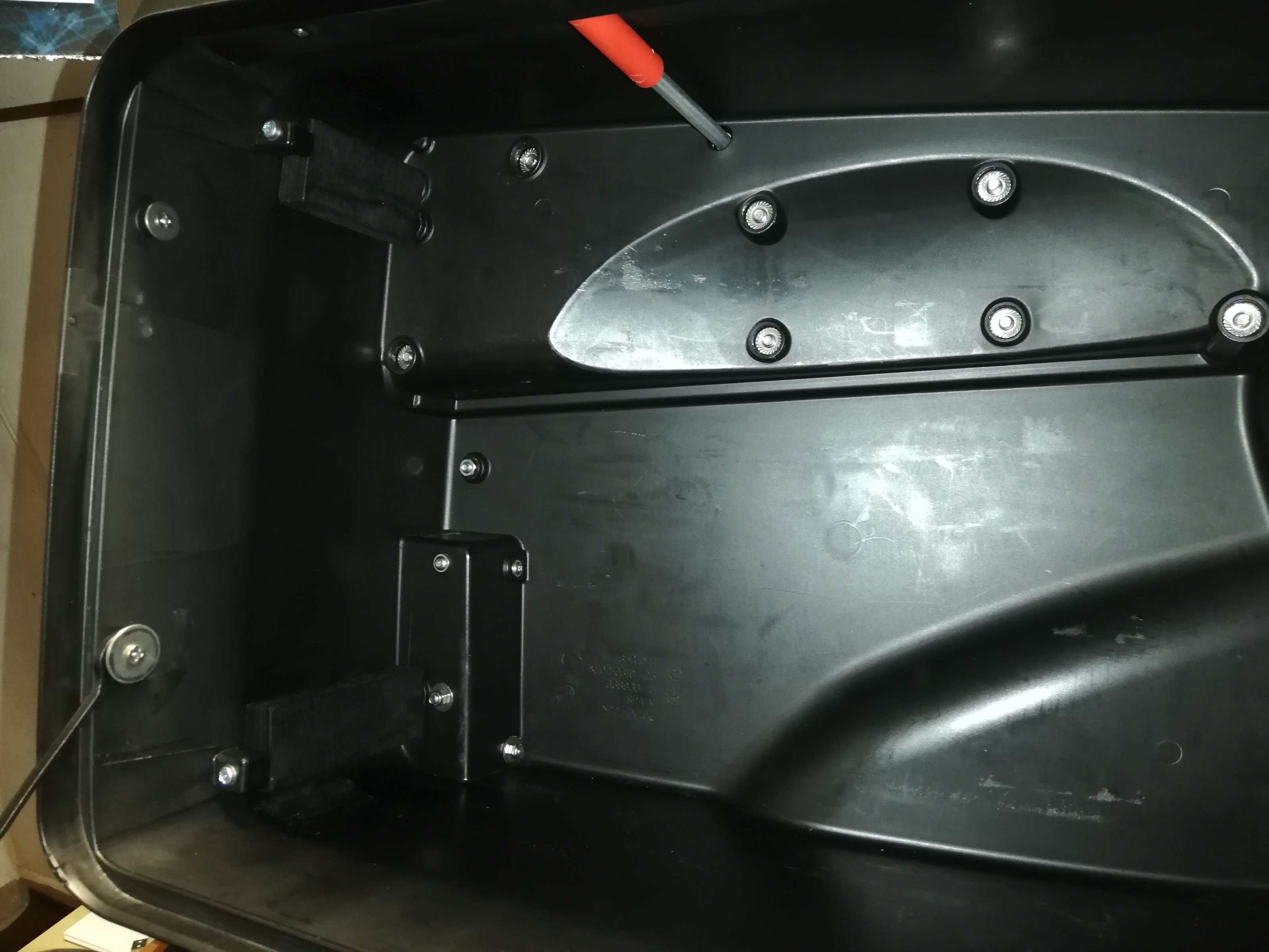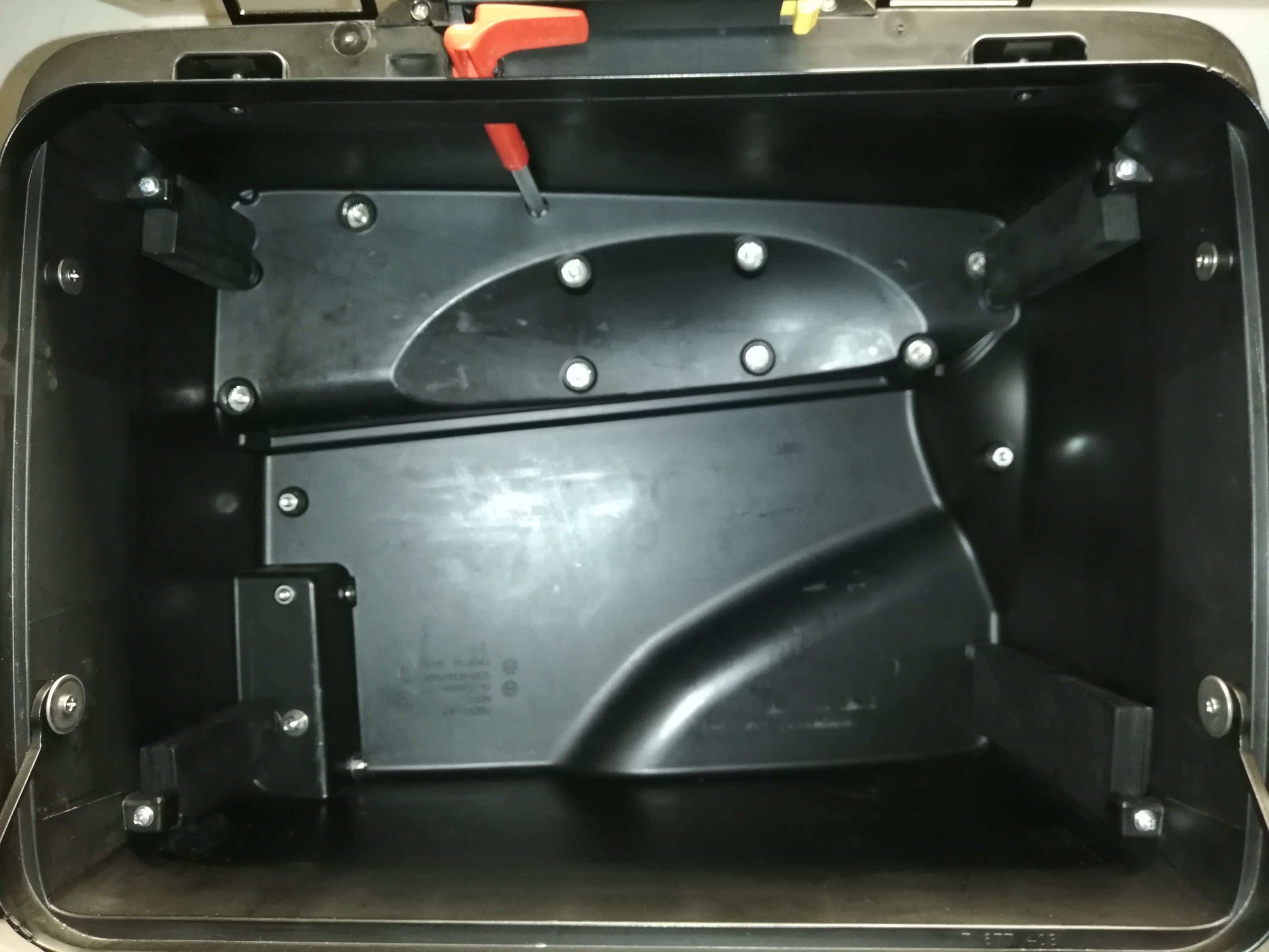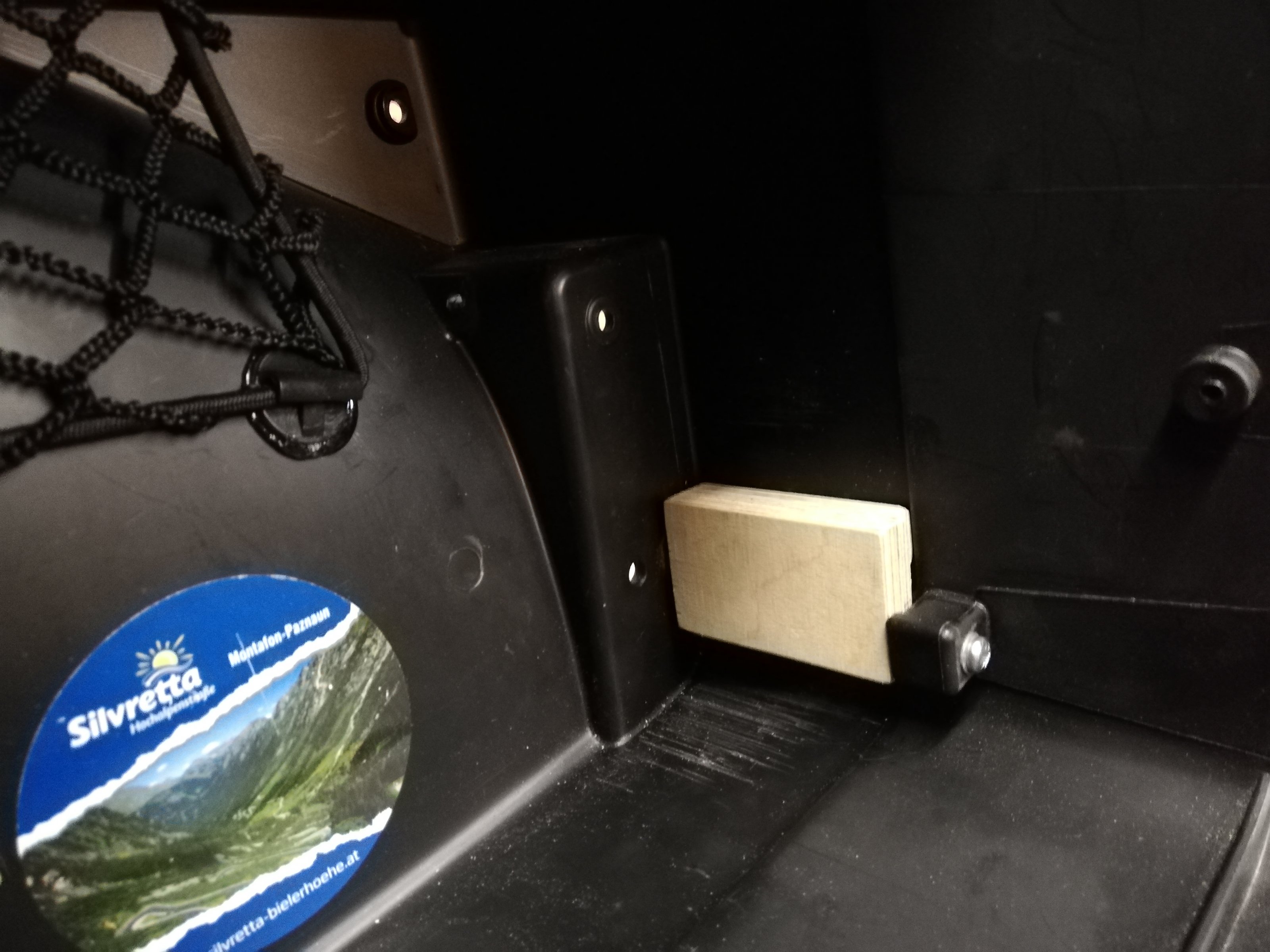 Dabei kam mir der Gedanke, den Verstellmechanismus einfach ausgebaut zu lassen und den Koffer in großer Stellung zu fixieren. Aber wie?
