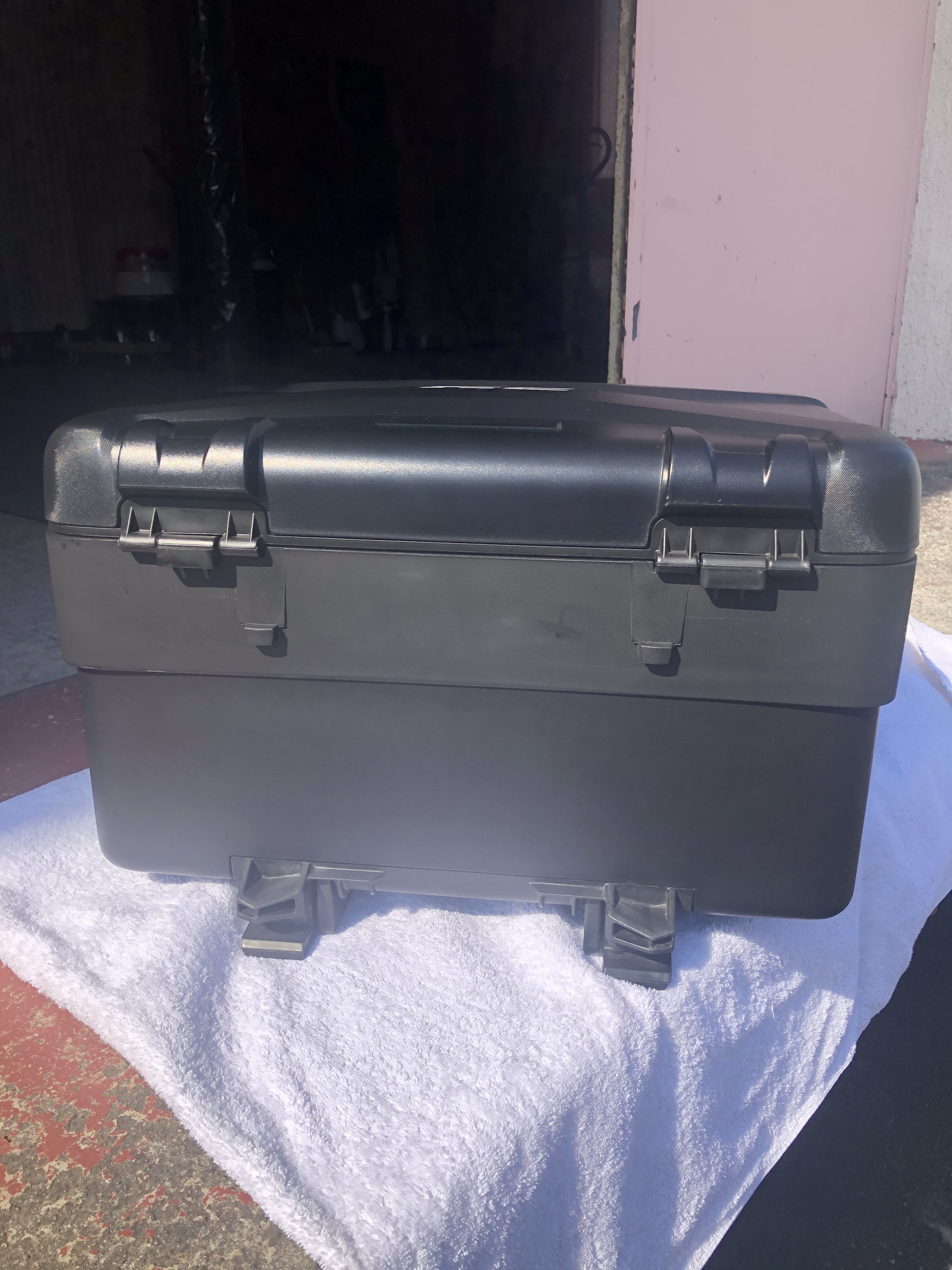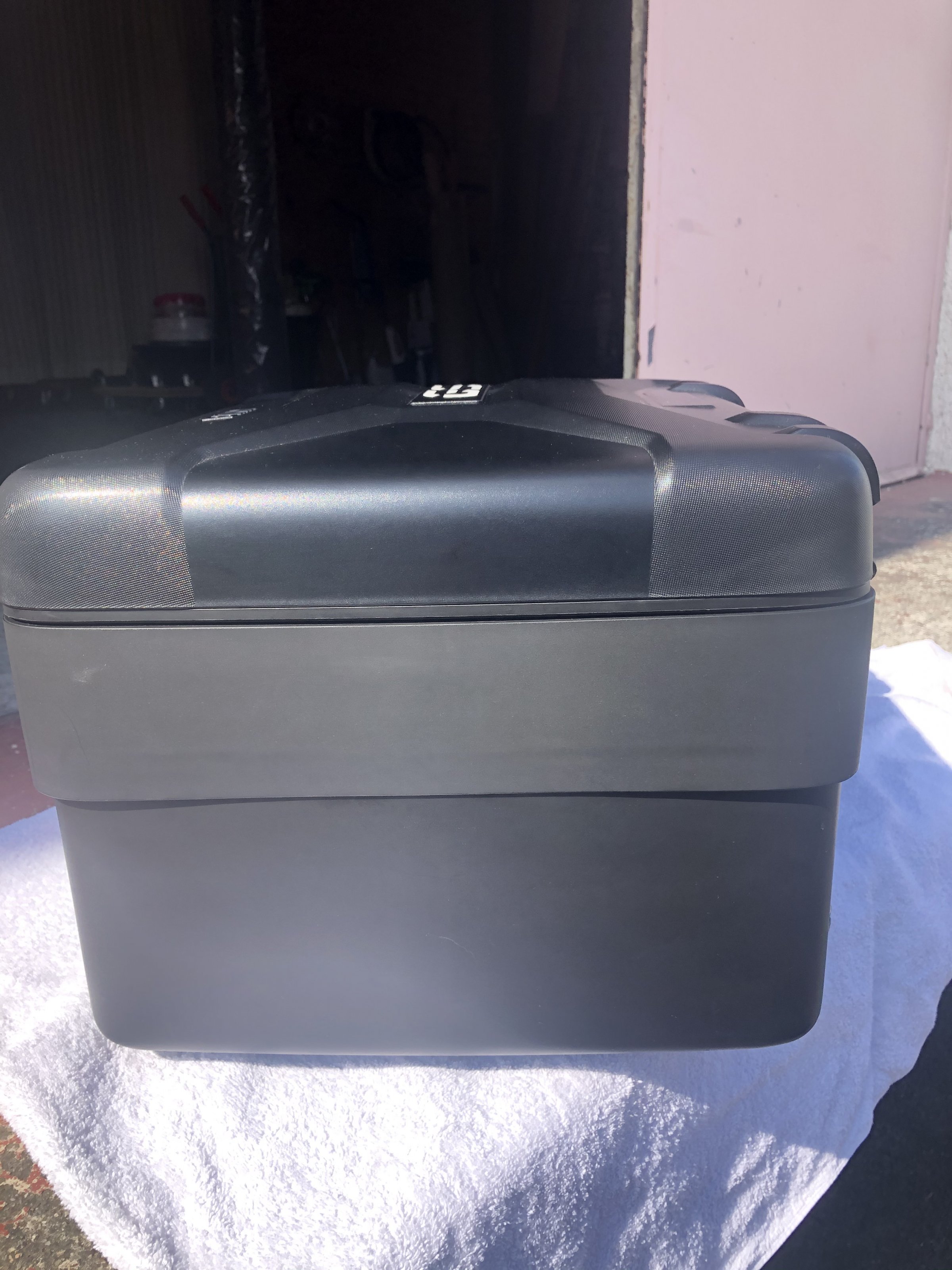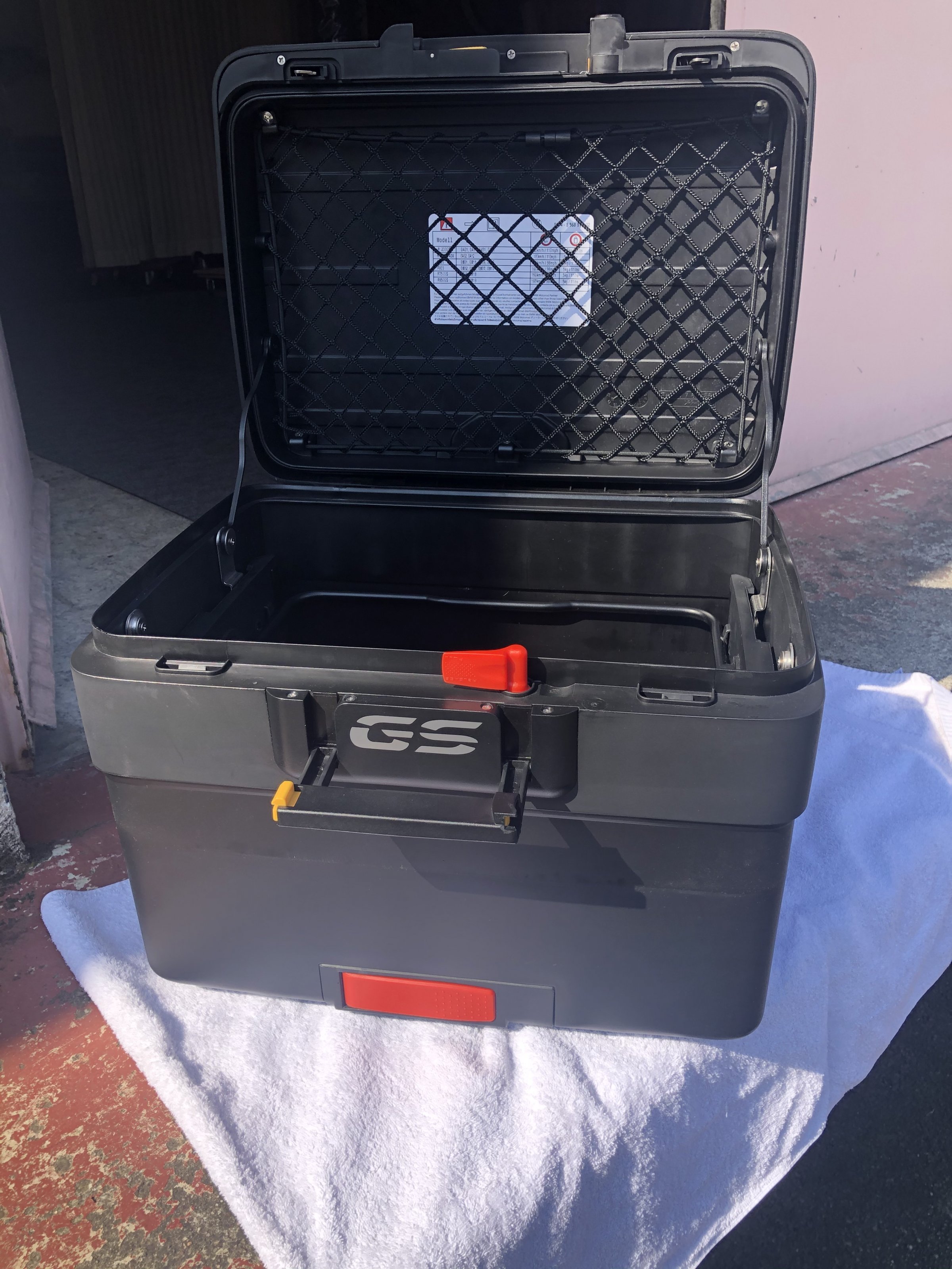 Sehr gut erhaltenes Topcase inkl. Gepäckbrücke, Schloss, Gepäcknetz und Codierplättchen.