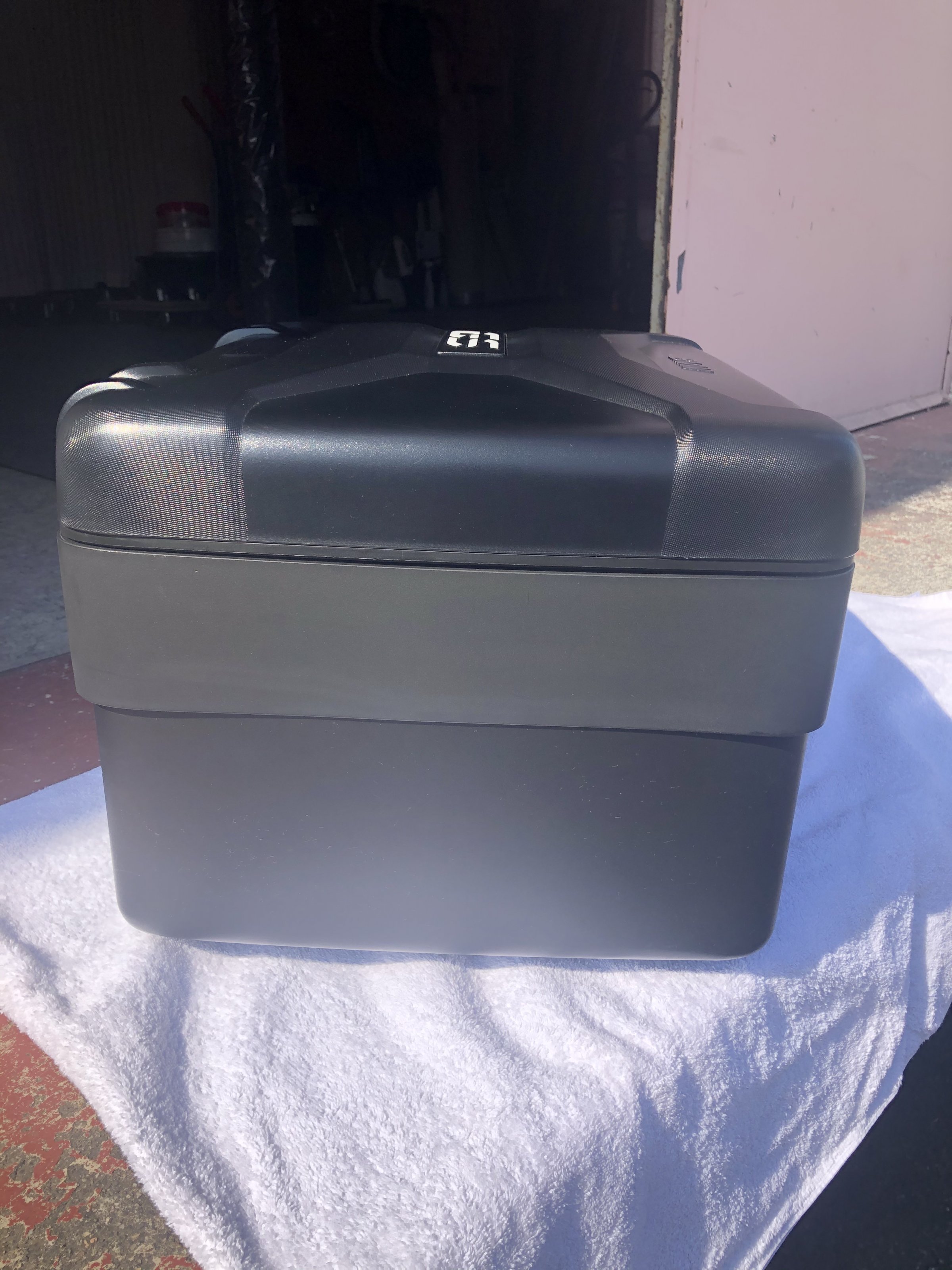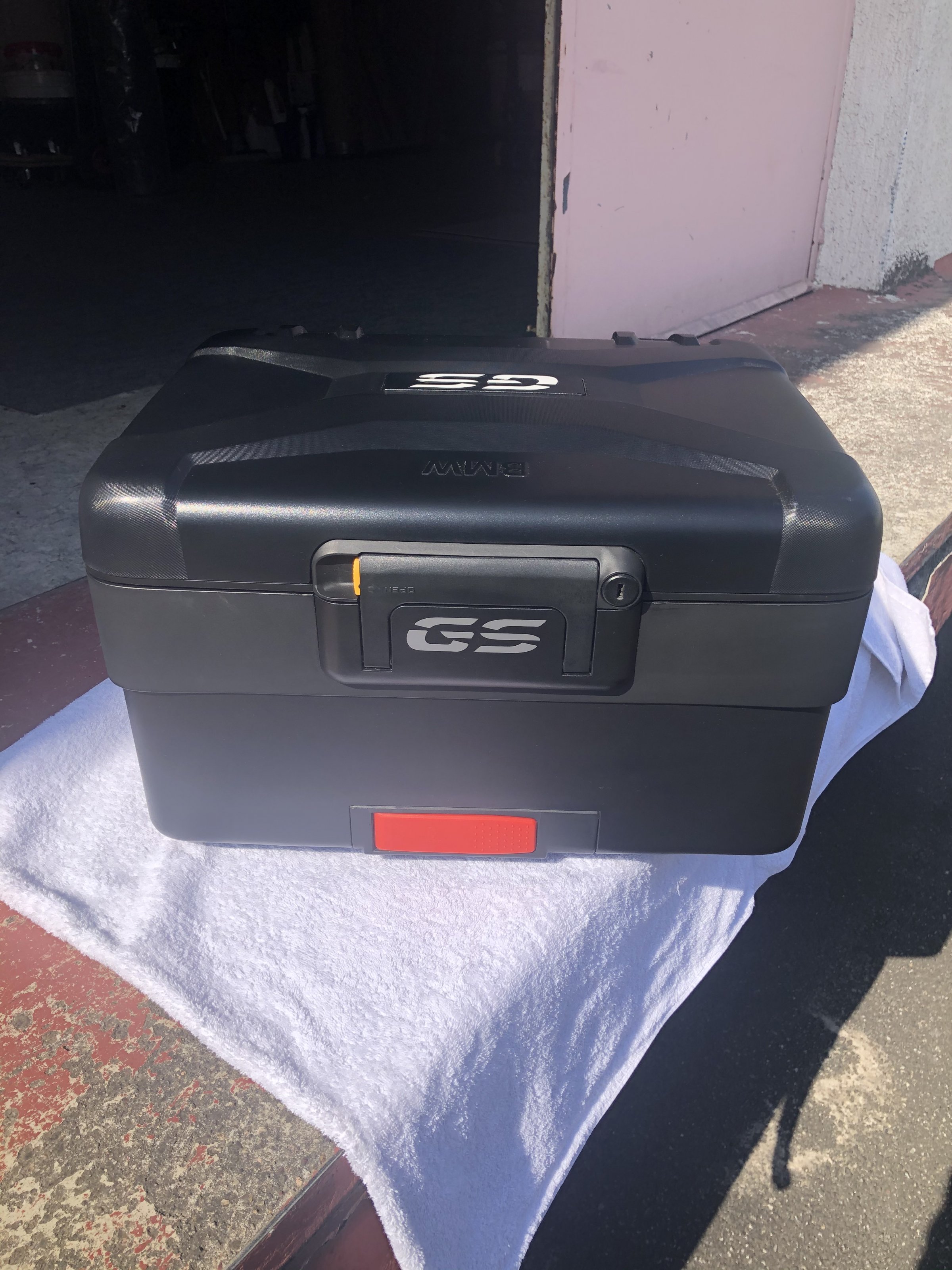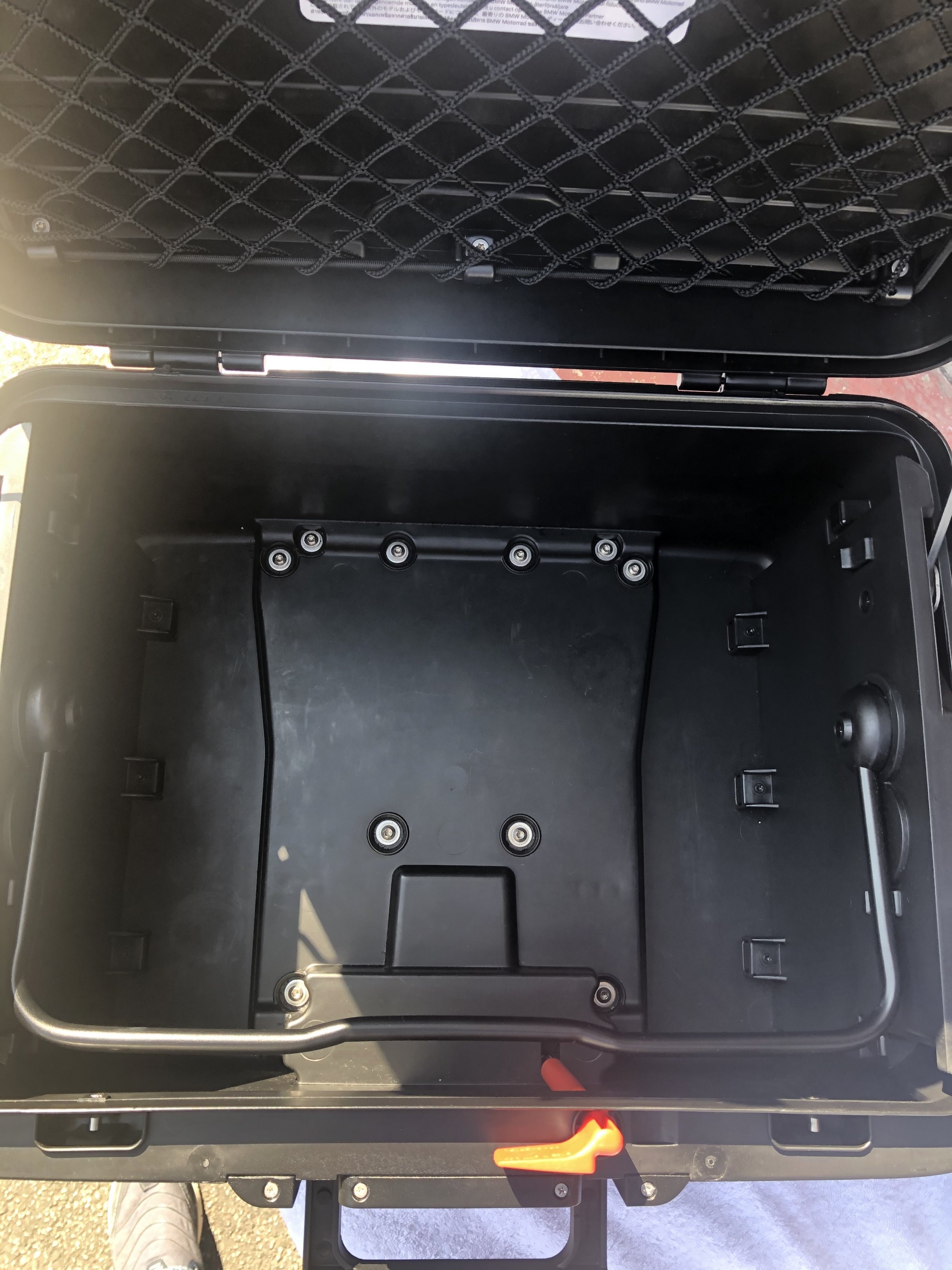 Sehr gut erhaltenes Topcase inkl. Gepäckbrücke, Schloss, Gepäcknetz und Codierplättchen.