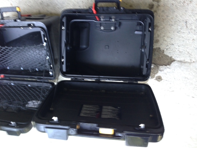 Koffer werden komplett mit Schlösser geliefert. Im linken Koffer habe ich ein Netz eingebaut (siehe Foto). Da normalerweise das Motorrad bei Beladen schräg steht, und somit nichts heraus fallen kann. Kann aber auch wieder entfernt werden.