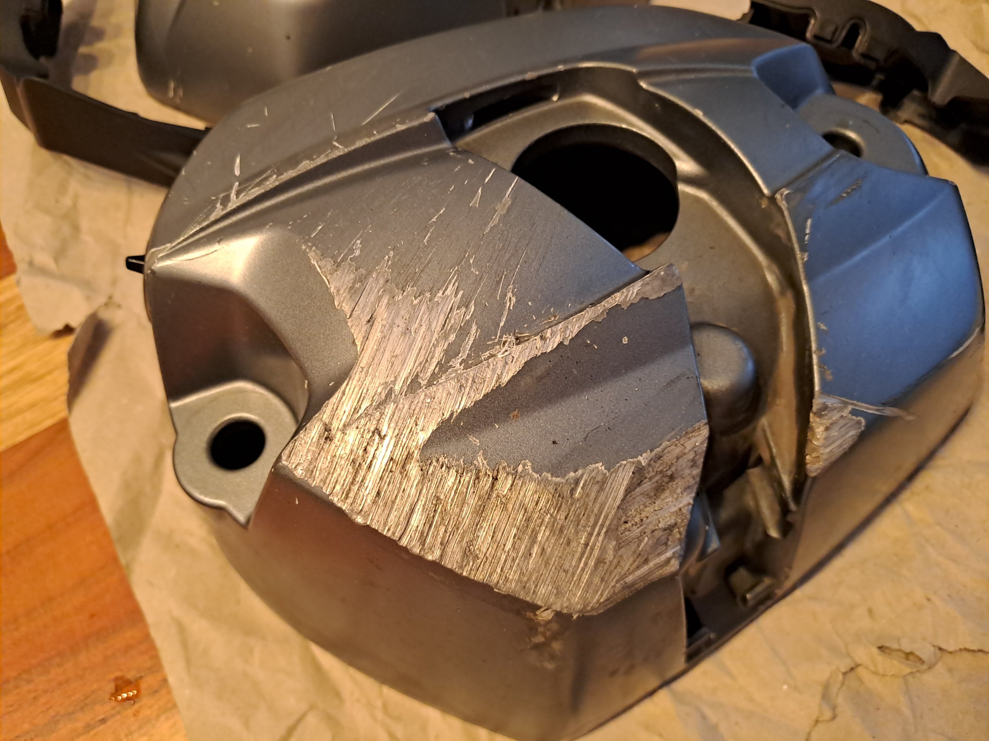 Wie auf den Bildern ersichtlich hat der rechte Deckel deutliche Kampfspuren durch einen Rutscher davongetragen. Der Deckel ist jedoch dicht und gerade. Der linke Deckel hat die üblichen Gebrauchsspuren nach nunmehr knapp 15 Jahren.