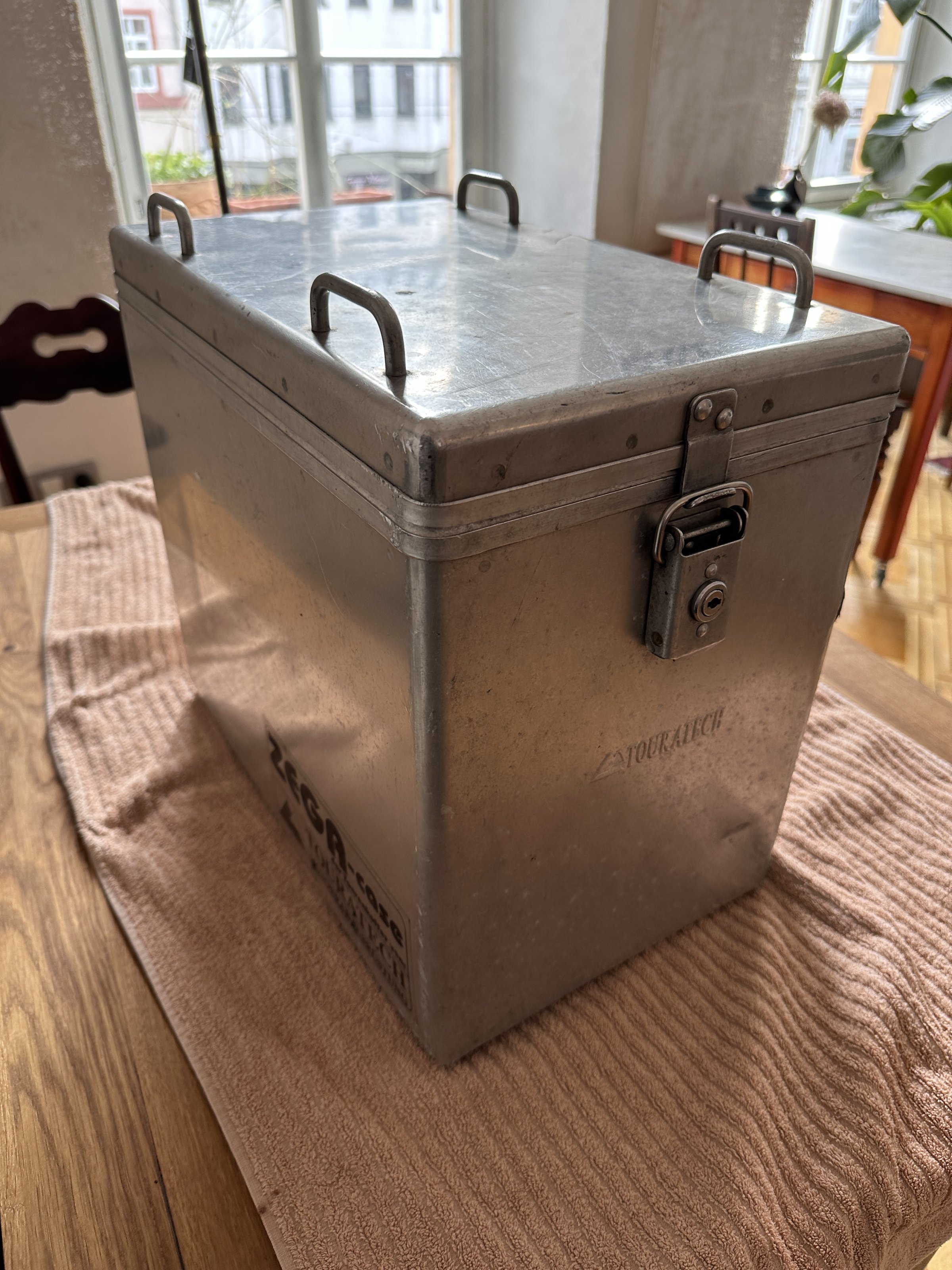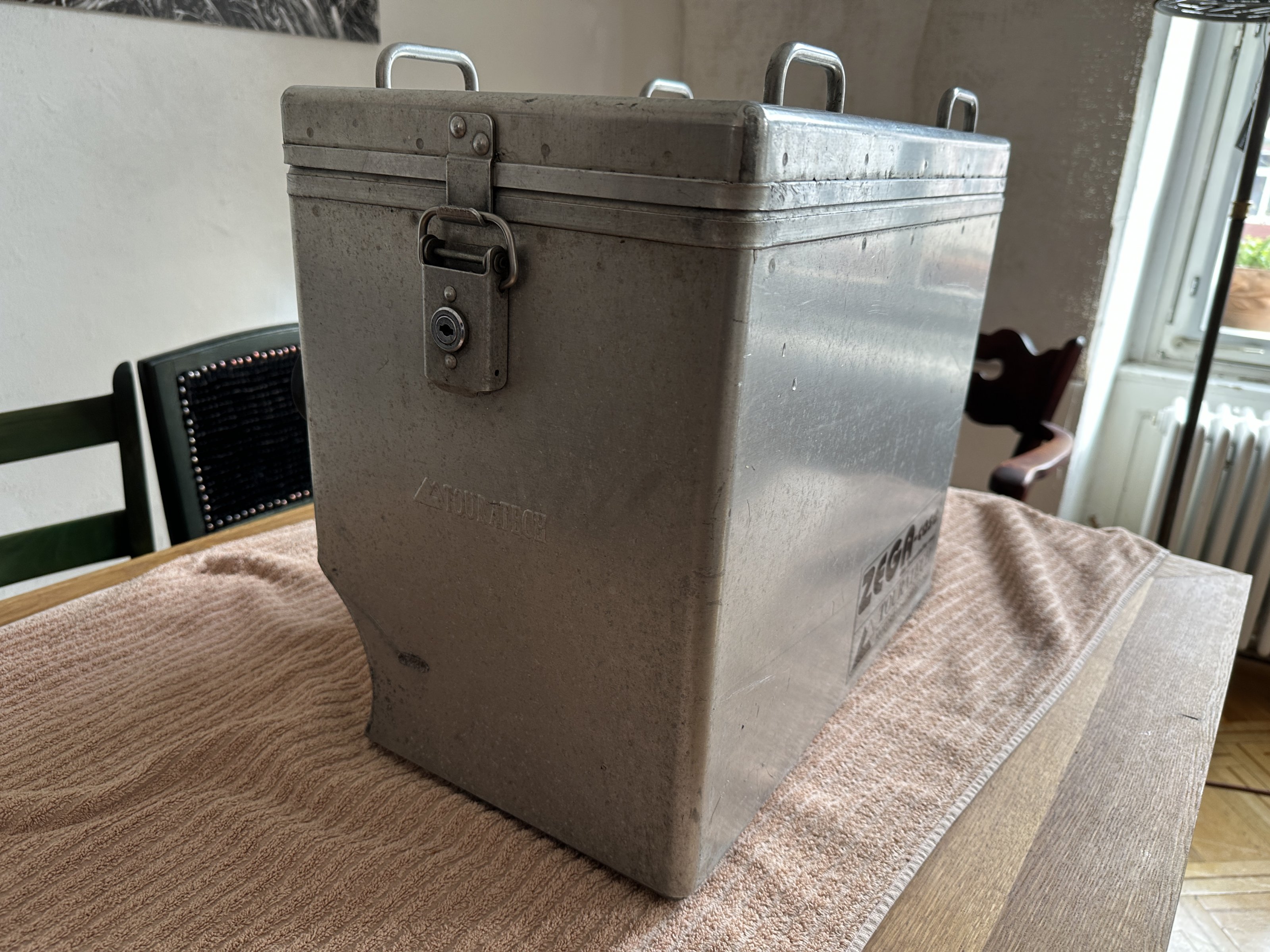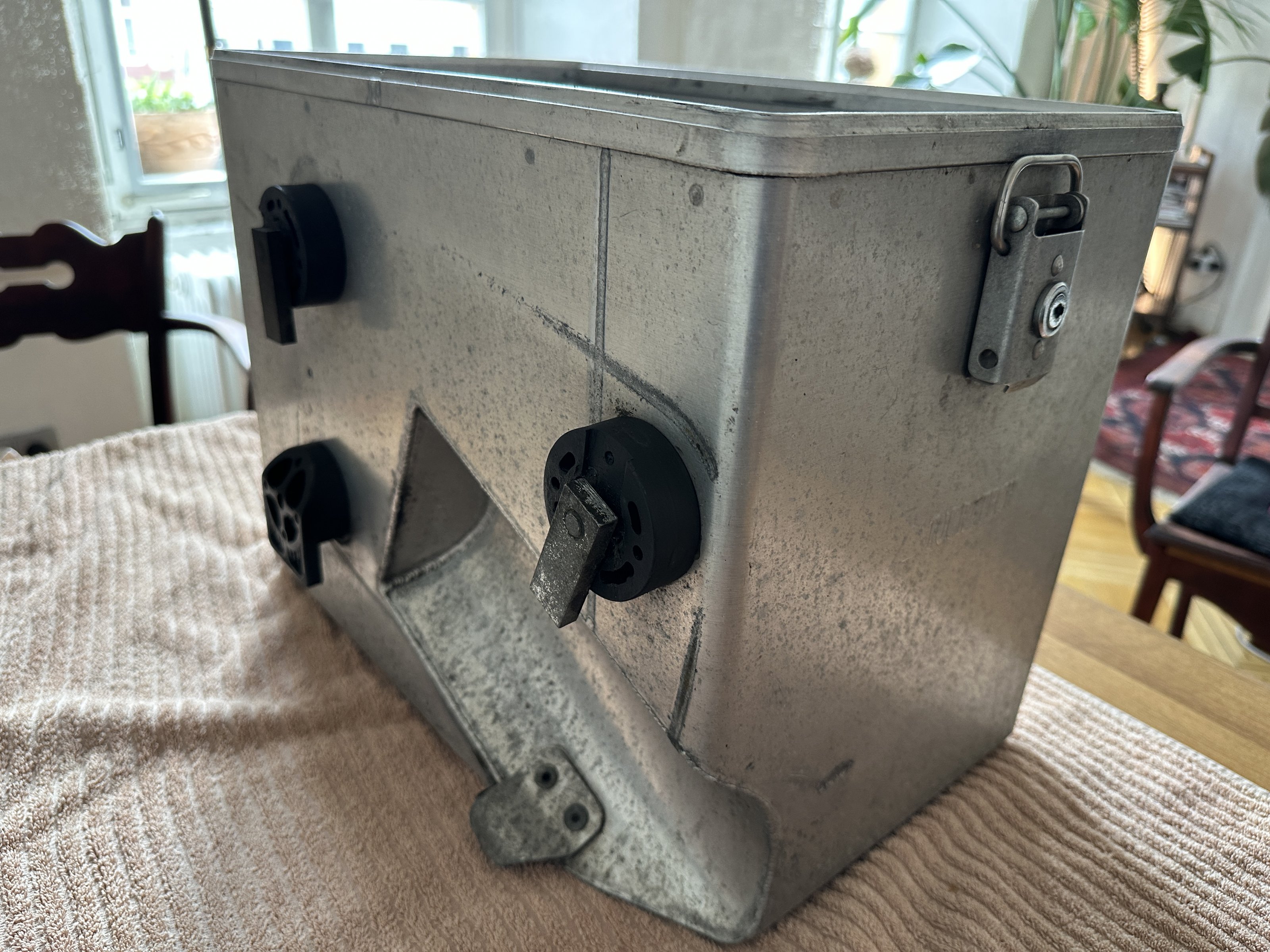 Weil es sich hier um nicht-eloxiertes Alublech handelt, ist es ratsam, immer mit schmutzresistenten Gepäckstücken zu reisen, sonst gibt es hässliche schwarze Alu-Abriebspuren. Die Original TT-Packtaschen sind leider nicht mehr vorhanden.