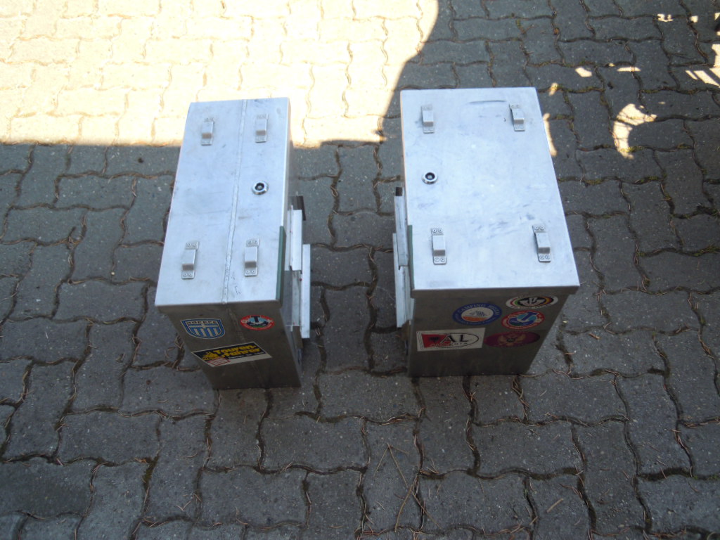 Verkaufe 2 Tesch Alukoffer und den passenden Kofferträger.