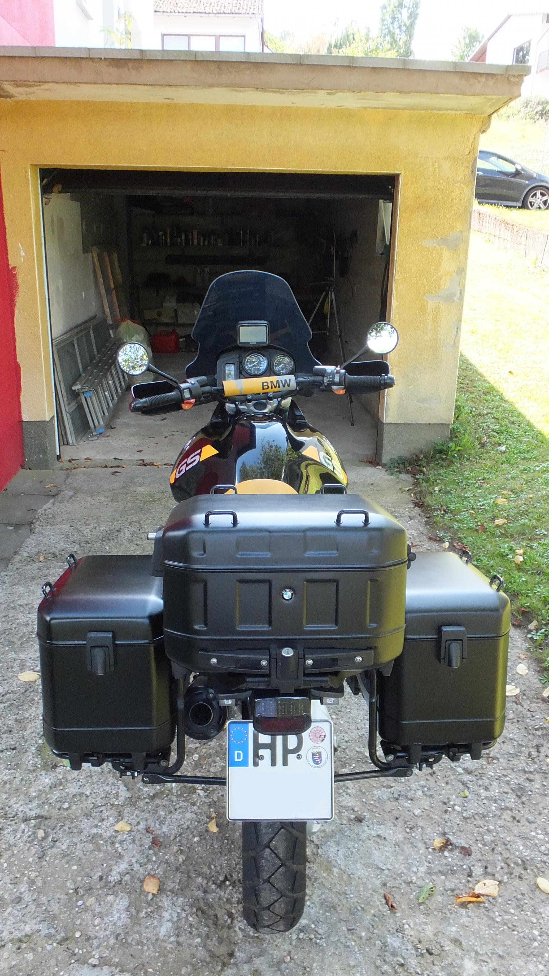 - schwarz lackierte BMW Adventure-Koffer inkl. Topcase