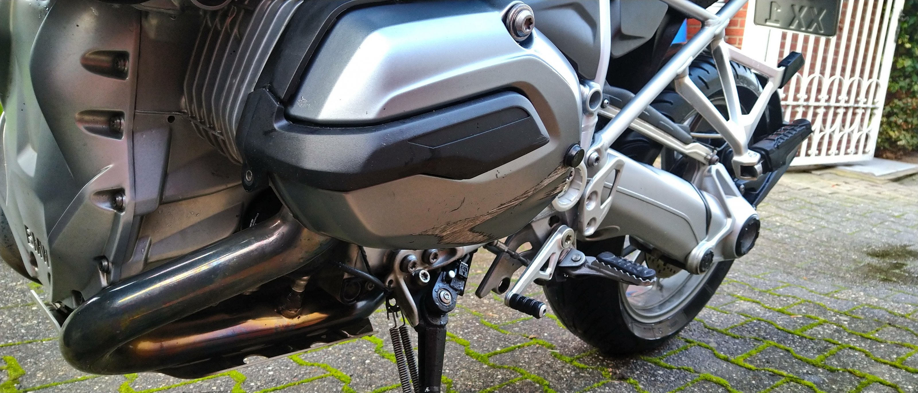 Habe den Kratzer damals mit Touratech Ventildeckelprotektoren kaschiert. Seht ihr auf den Bildern. Links habe ich mal zum Begutachten abgemacht.