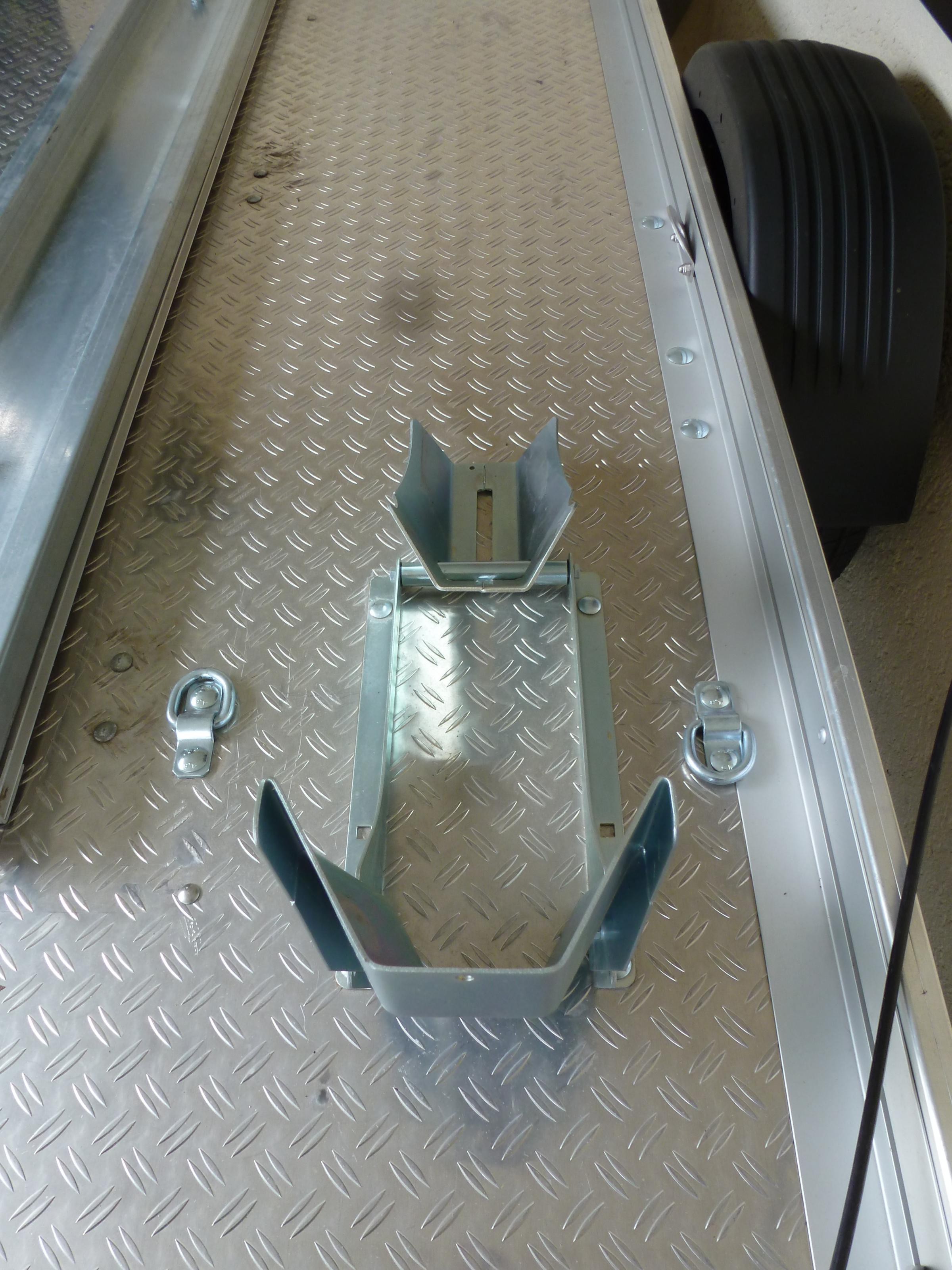 mit Auffahrschiene und zusätzlicher Schiene, auf der man auf den Hänger mit dem Motorrad laufen kann