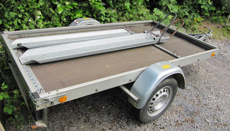Habe mir den Hänger selbst gerad erst zugelegt. Jetzt musste ich allerdings feststellen, dass die Siebdruckplatte in einer Ecke nicht mehr so toll ist. Etwas weich. Hat zwar keinen Einfluss auf den Stand der Motorradschiene(n),nur habe ich in dieser Ecke kein Vertrauen in die dort befestigten Ösen. Entweder tauscht man die ganze Platte aus, oder befestigt die Zurrgurte an dem Außenrahmen. Handwerklich bin ich allerdings eine Niete und ich habe auch keine Möglichkeit die Platte zu tauschen. Ich habe schon gegoogelt, eine neue Platte müsste bei ca. 50-80 Euro liegen. Man muss sie halt nur wechseln können. Dann hat man einen richtig guten Transporter.