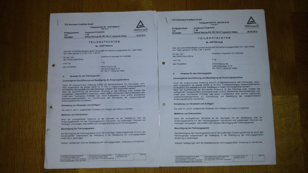 Da ich mich von meiner GS getrennt habe verkaufe ich das sehr gut funktionierende Öhlins komplett Fahrwerk TTX39 hinten und TTX36 vorne, das Fahrwerk ist so gut wie neu und zur Zeit mit das Beste was man Fahrwerktechnisch fahren kann, es ist ohne jeglichen Kratzer oder Beschädigungen, siehe auch Bilder, dabei sind die Teilegutachten zur eventuellen Eintragung, ich hatte es nicht eingetragen, waren nur kurz eingebaut, hatte das Fahrwerk 2014 neu gekauft aber erst April 2015 eingebaut und seitdaher wenig gefahren da ich mir eine KTM 1190 Adventure R zugelegt habe.