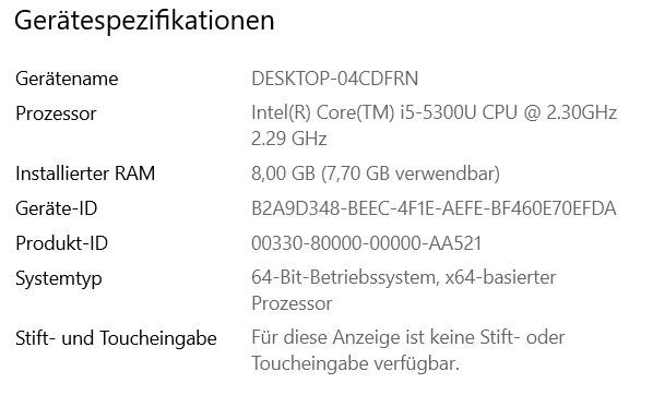 Festplatte SSD 167 GB, Arbeitsspeicher 8 GB