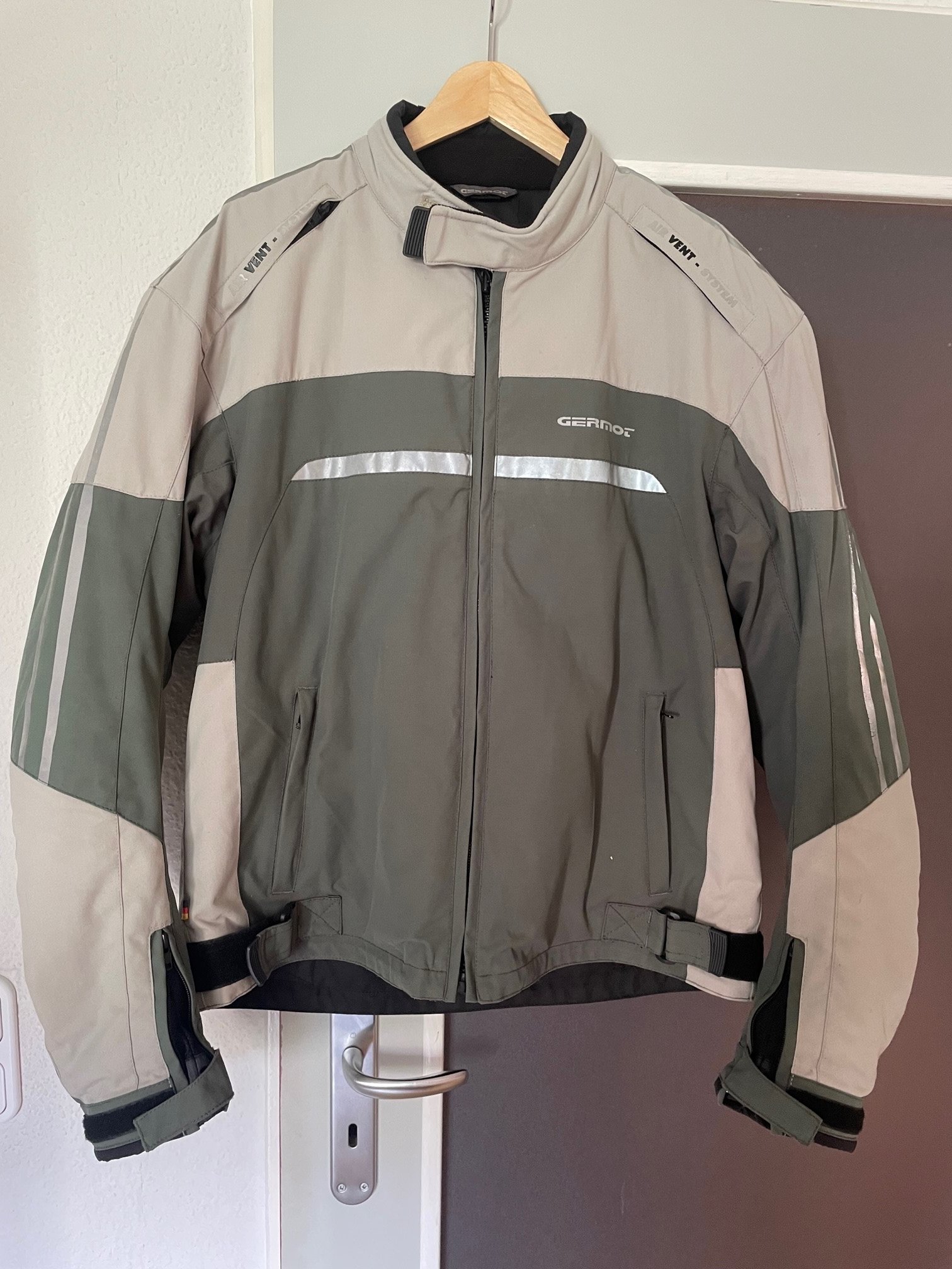 Germot leichte Sommerjacke, XXL, mit Lüftungsreissverschlüssen und - wer's braucht - Thermoinnenjacke. Rücken-, Schulter- und Ellbogenprotektoren vorhanden.