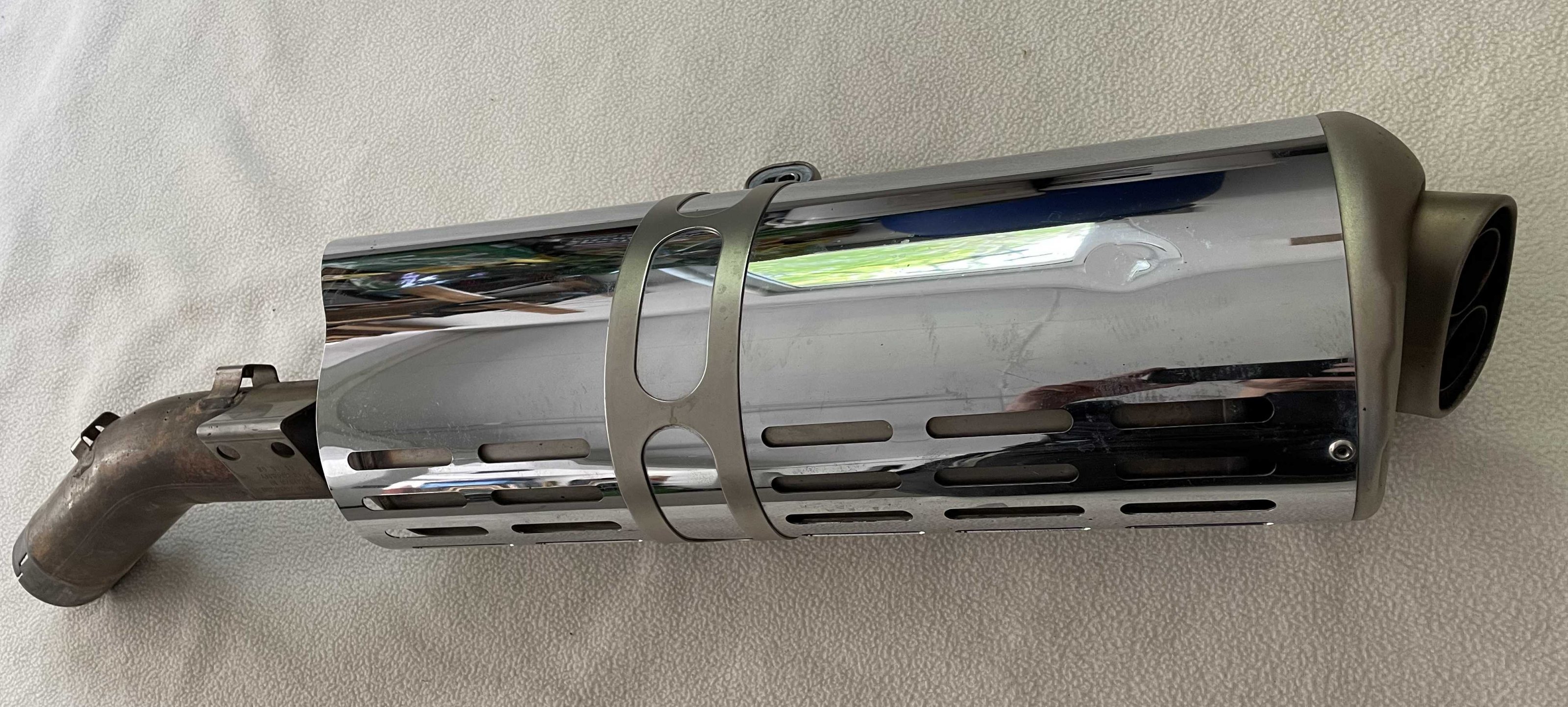 Schalldämpfer original, ca. 10000km gefahren, kleine Beule (verschwindet hinter dem Kofferhalter), VB 500€ (Teilenummer 18127694463)