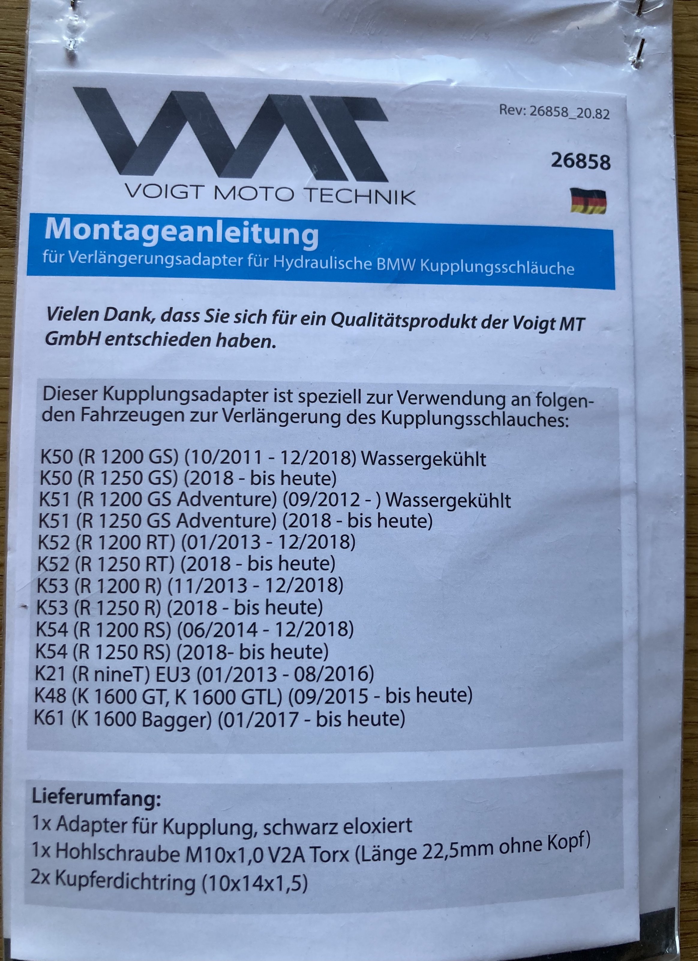 Adapter zur Verlängerung der Kupplungsleitung an BMW Motorrädern, 39,95 €