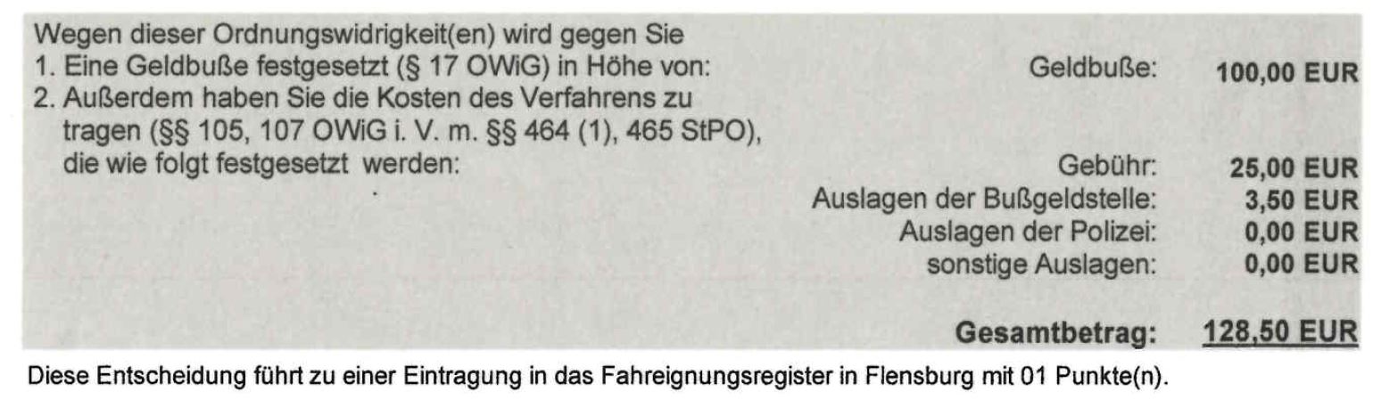 Jetzt mit Rettungsgassenthema sind es 2 Punkte, 240 Euro plus Gebühren und 1 Monat Fahrverbot.