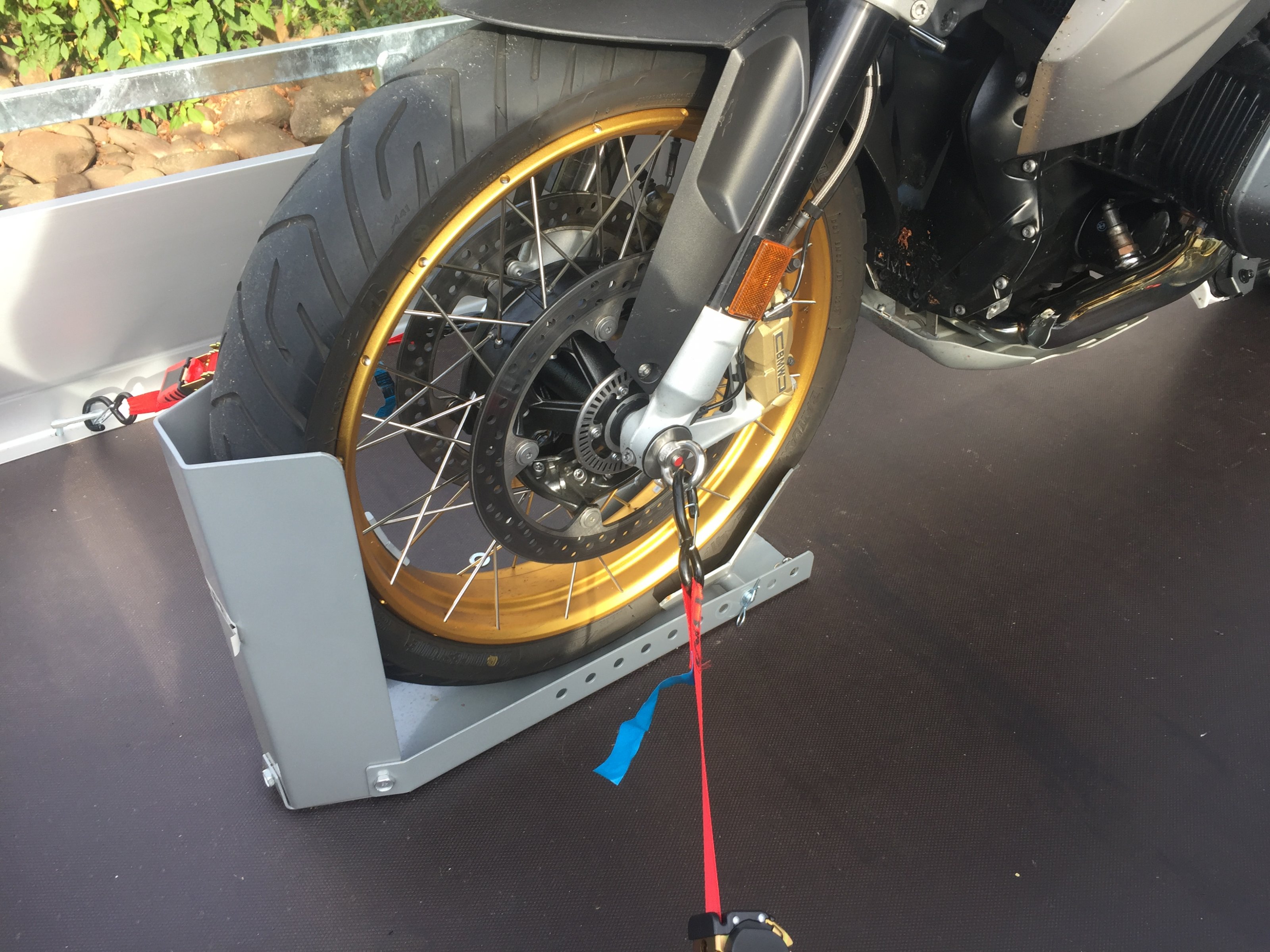 mein onkel (74 jahre jung) parkt seine r1150r auf einer wippe von