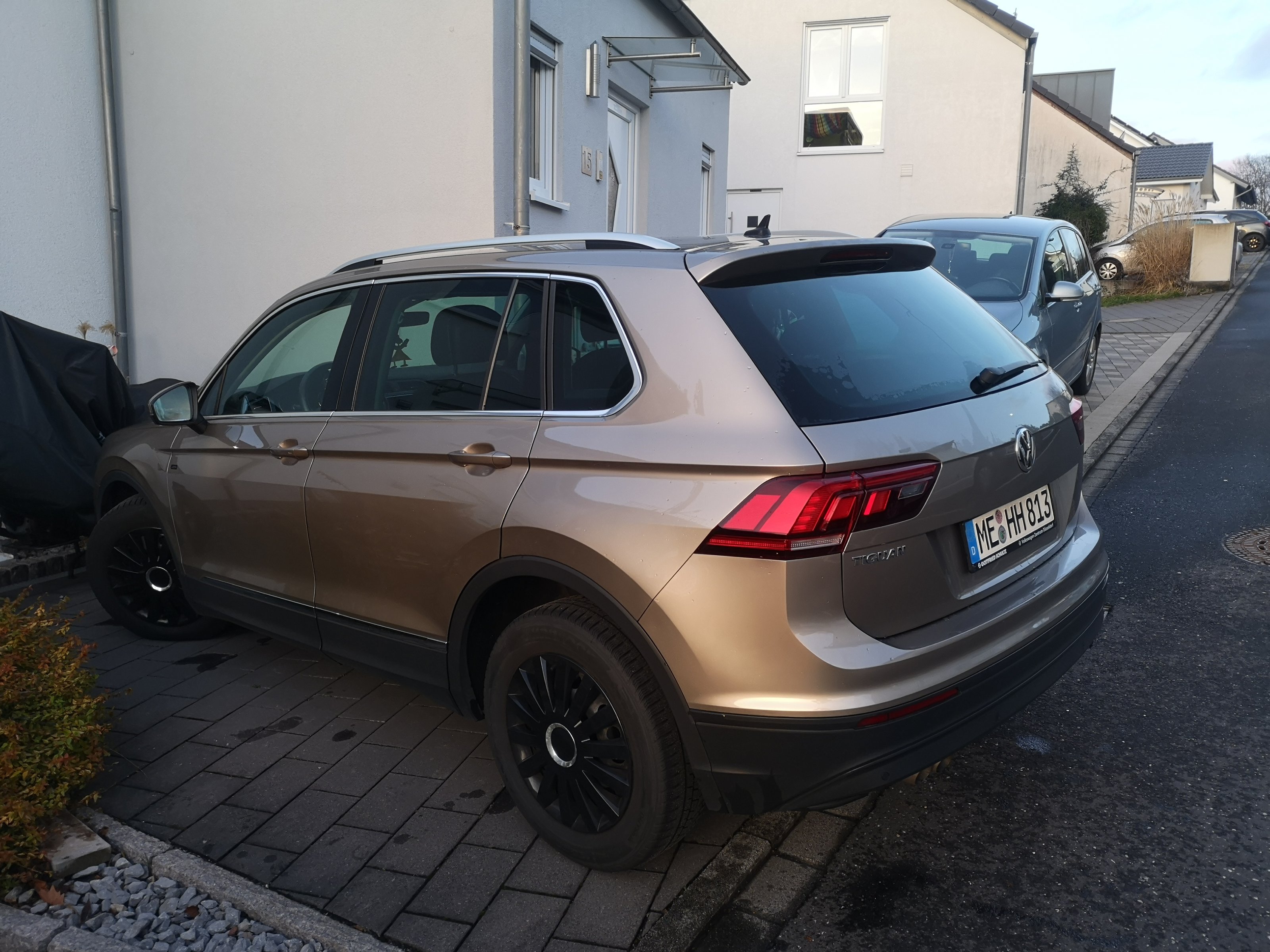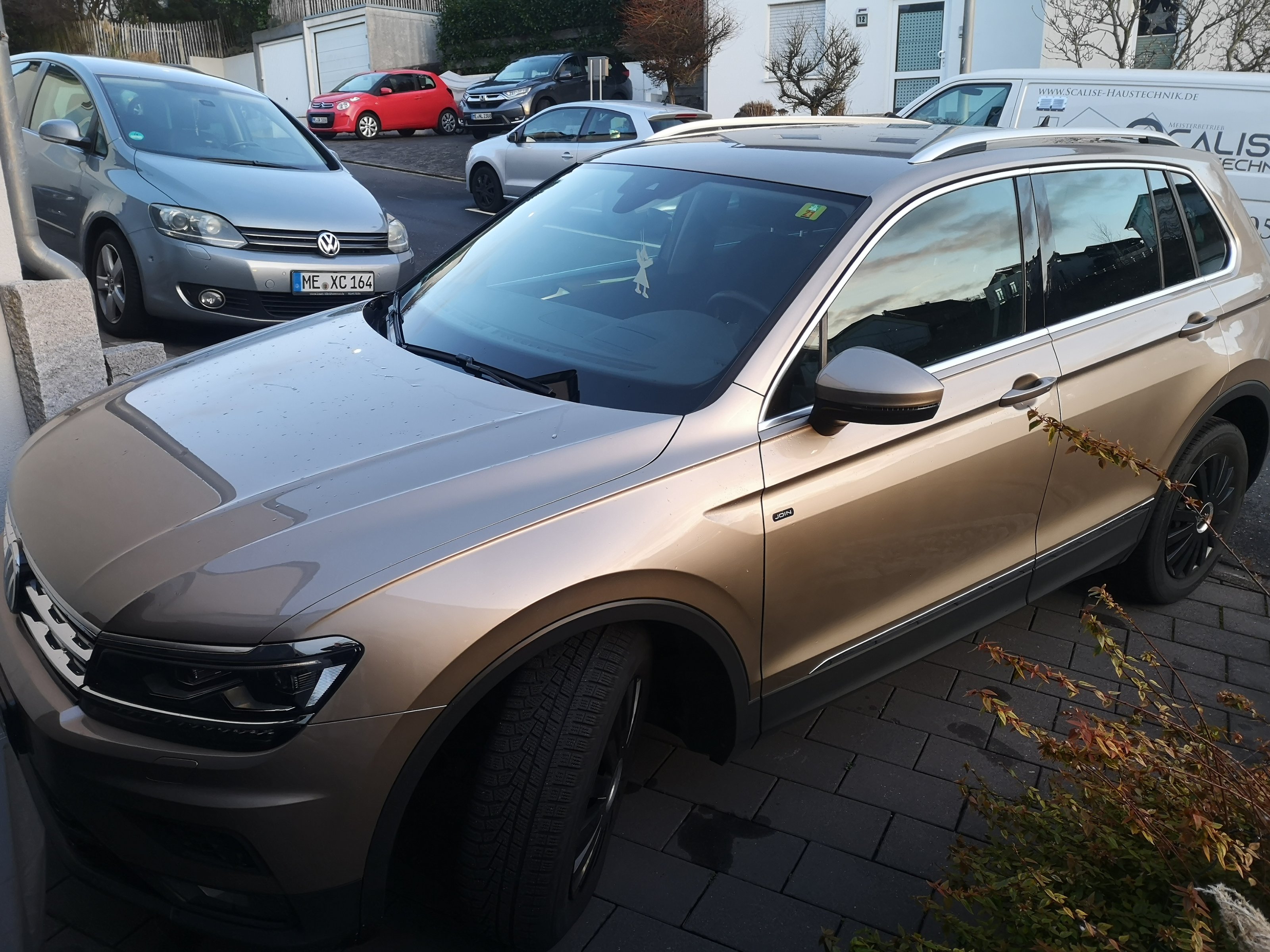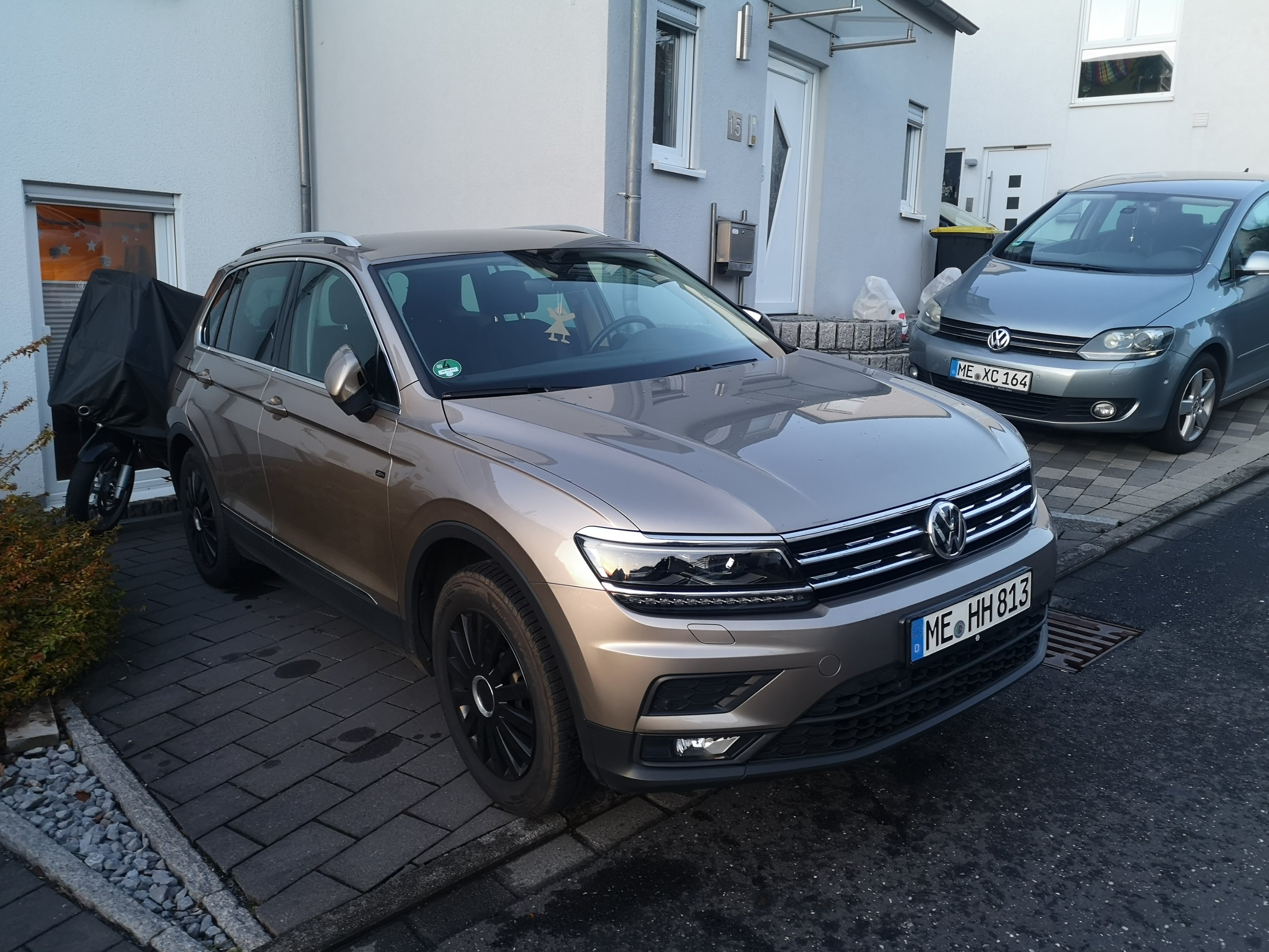 Der Tiguan ist in einem guten gebrauchten Zustand, kommt gerade frisch aus der Inspektion und die Verschleißteile sind auch gut.