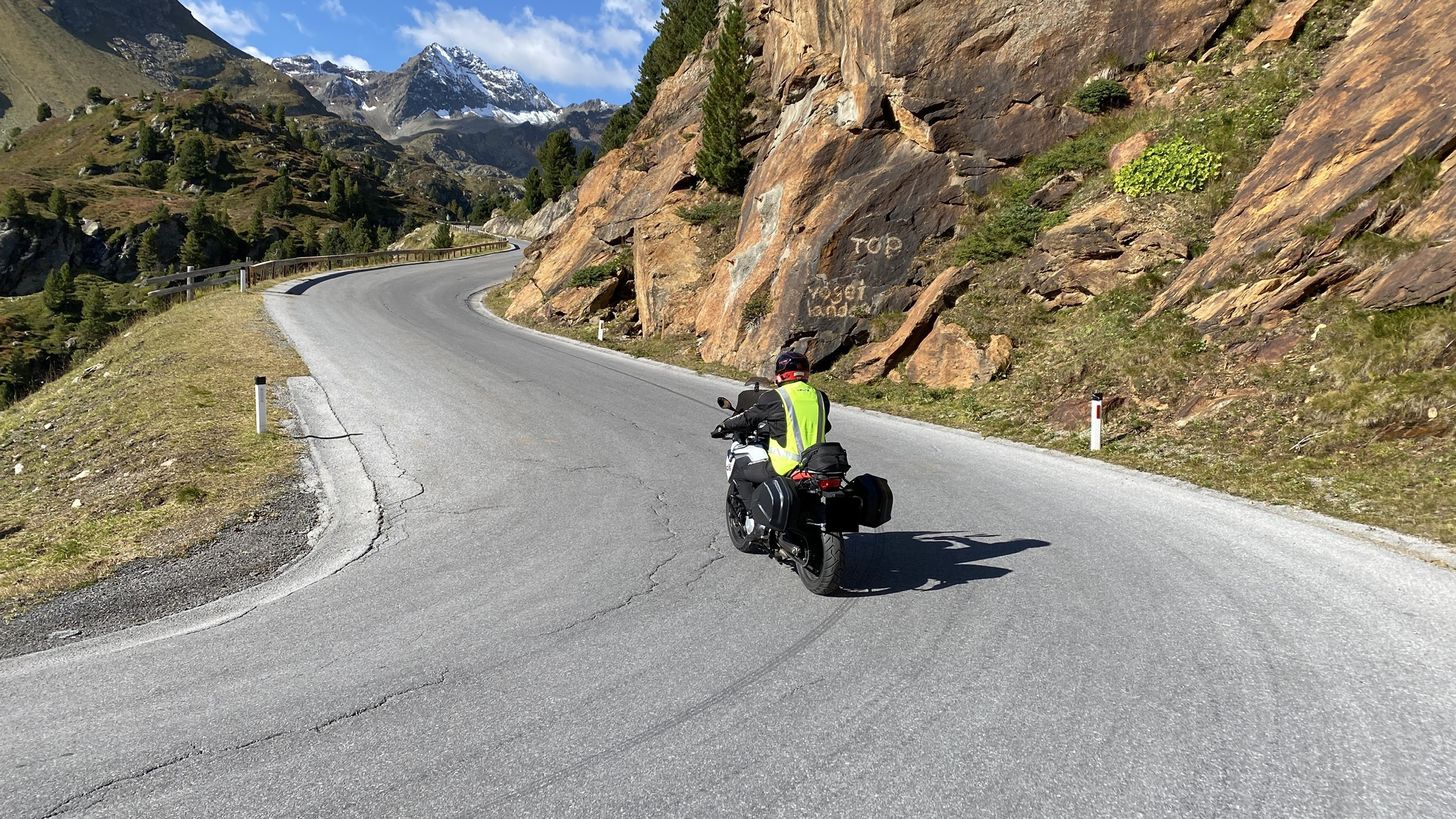 . Senkrecht durch die Kurve, schon fast auf der Gegenfahrbahn, ...