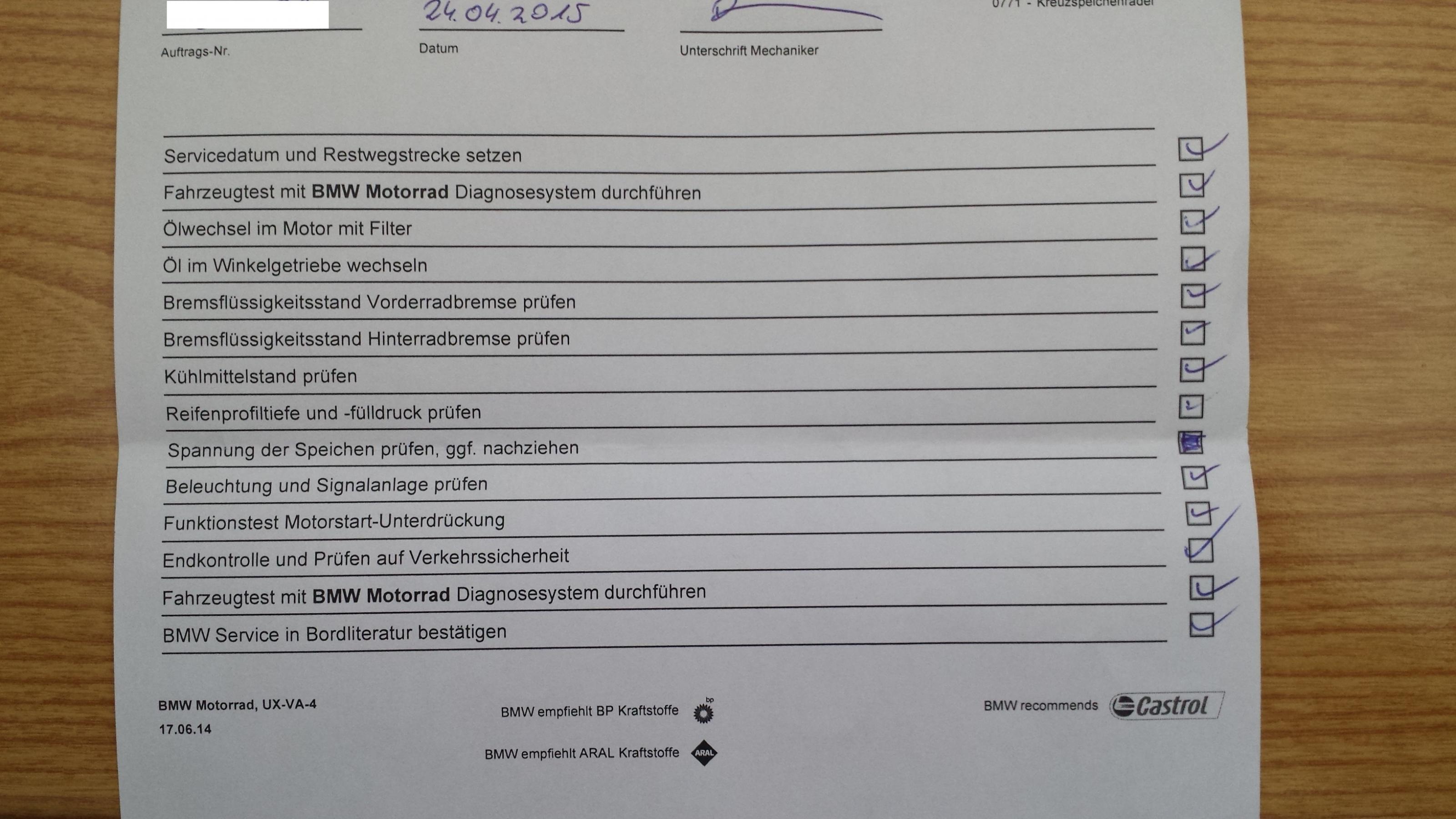 Aber was wird sonst noch gecheckt: auf der Rechnung steht nur gemäss Wartungsplan, aber den habe ich in den Unterlagen nirgends gefunden...