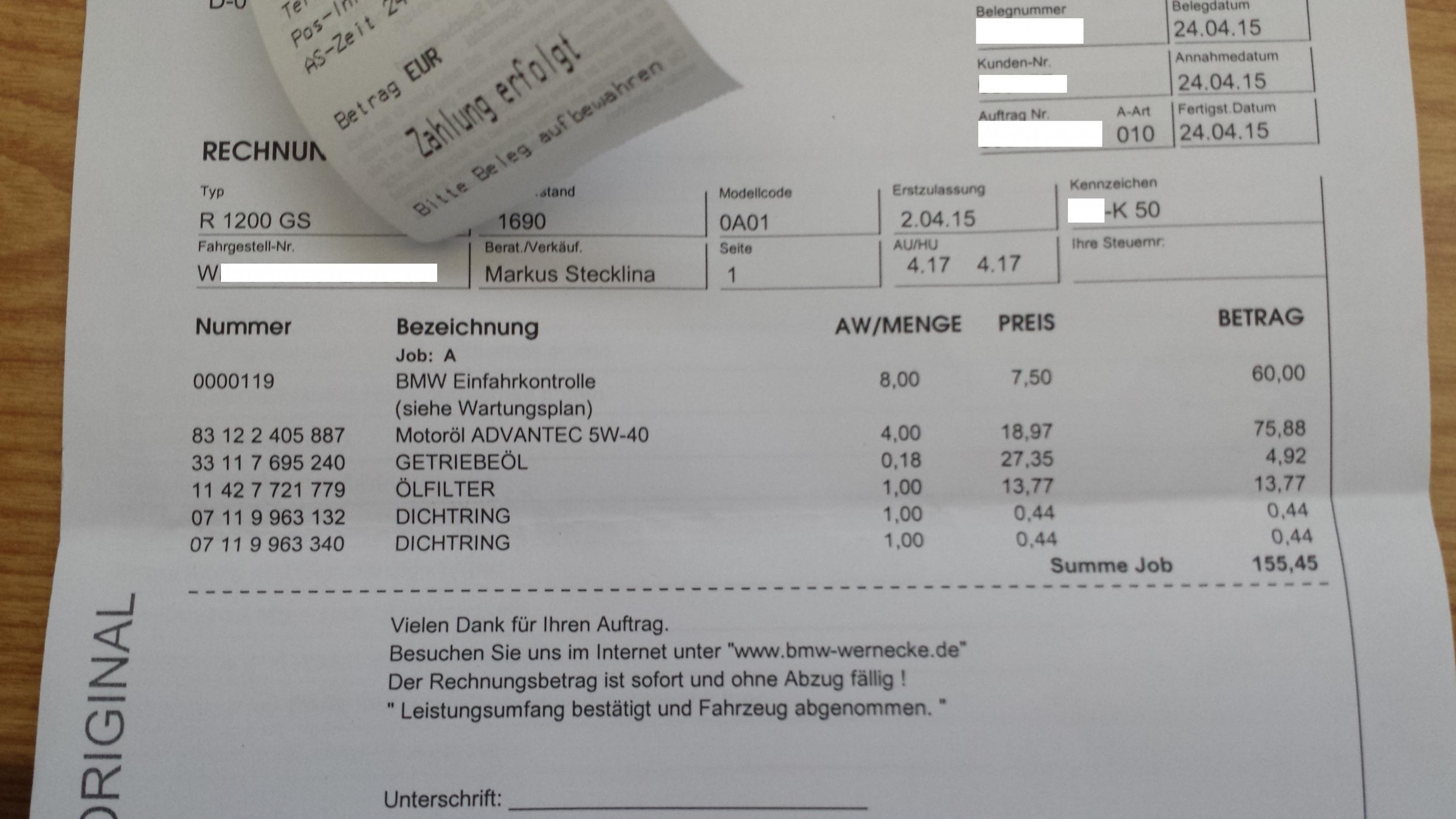 Frage: Was wird an einer Neuen Maschine gemäss Wartungsplan gecheckt? Habe auf der Rechnung gesehen, dass da die Oele getauscht wurden, auch der Oelfilter etc. ist für mich ok, hätte ich auch so gemacht.