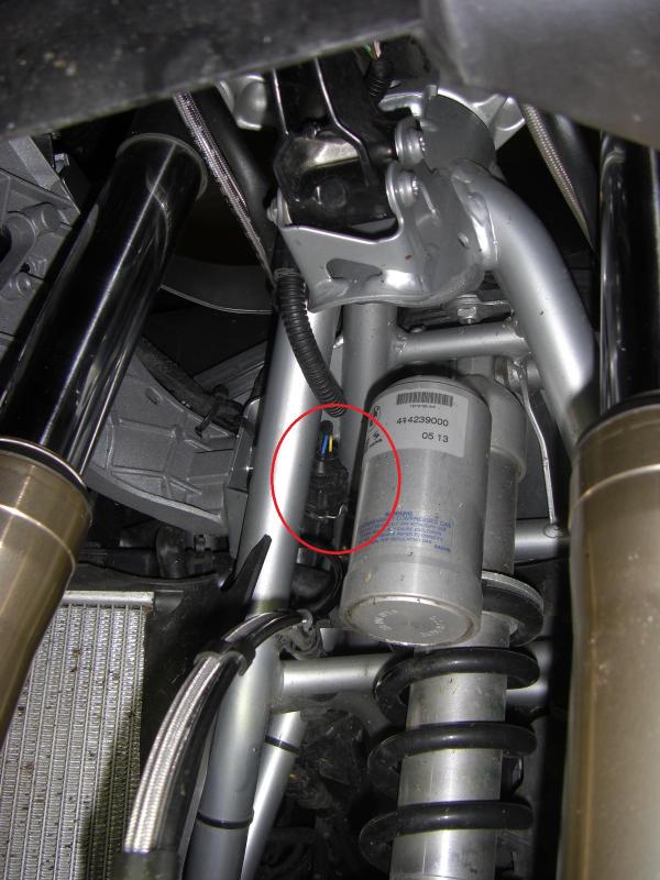 Was ist das für ein Stecker ohne Gegenstecker und Kabel, der sich vorn auf der rechten Seiten neben dem Dämpfer befindet? Die Bilder sind von vorn gemacht mit Blickrichtung zwischen Schutzblech und Schnabel.