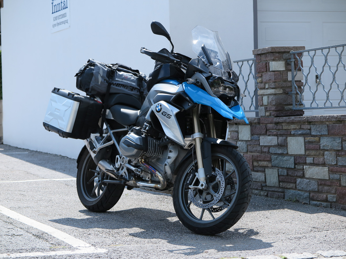 Bei meiner nächsten Tour werde ich es aber mal ohne Koffer probieren und eine grössere Gepackrolle (60L) mitnehmen, da sich das Gewicht der schweren, vollgepackten Koffer auf Hochalpinen Serpentinenstrecken merklich negativ auf das Handling auswirkt. Zumindest wenn man es etwas sportlicher angeht.