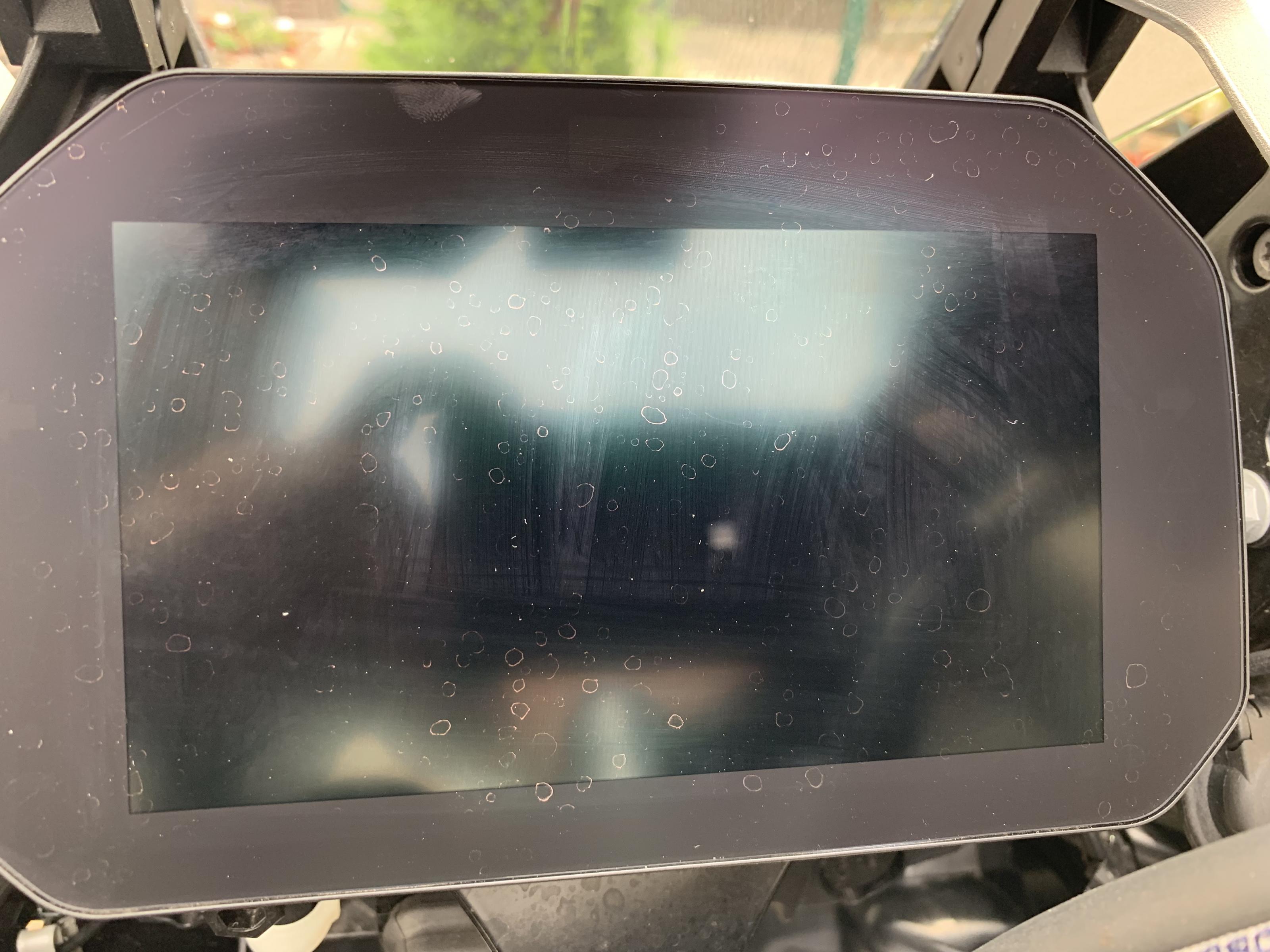 seit gestern nach der "normalen" Reinigung meiner R1250GS mit dem Gartenschlauch habe ich auf dem TFT Display Wasserflecken, die sich nicht mehr entfernen lassen.
