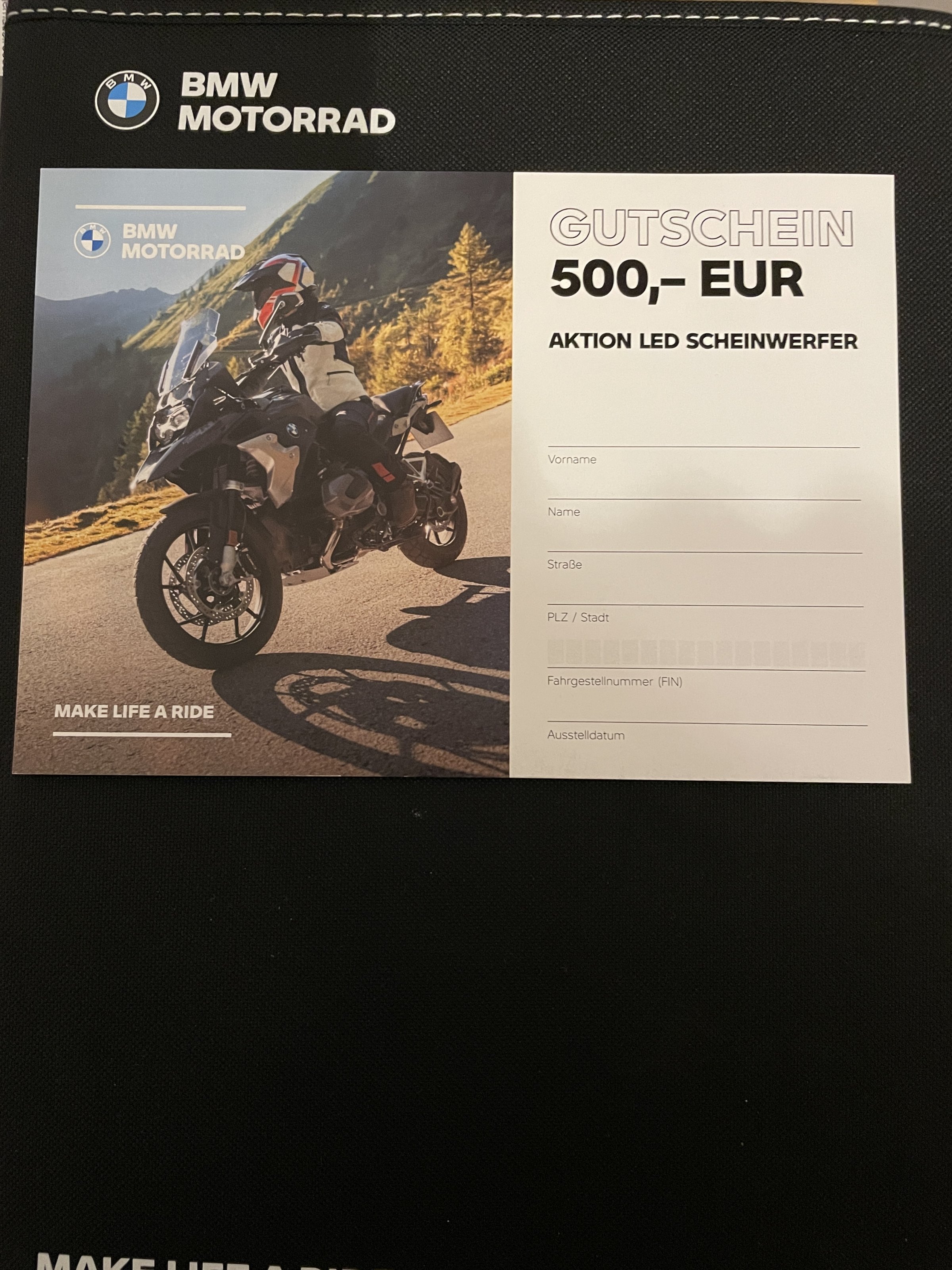 4. Blanko Gutschein BMW 500€ für BMW Zubehör oder BMW Teile. 450.-€