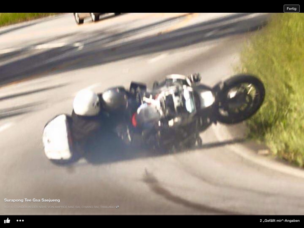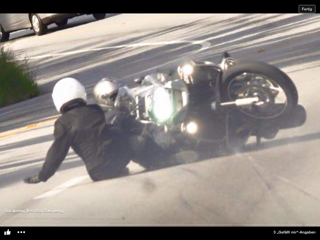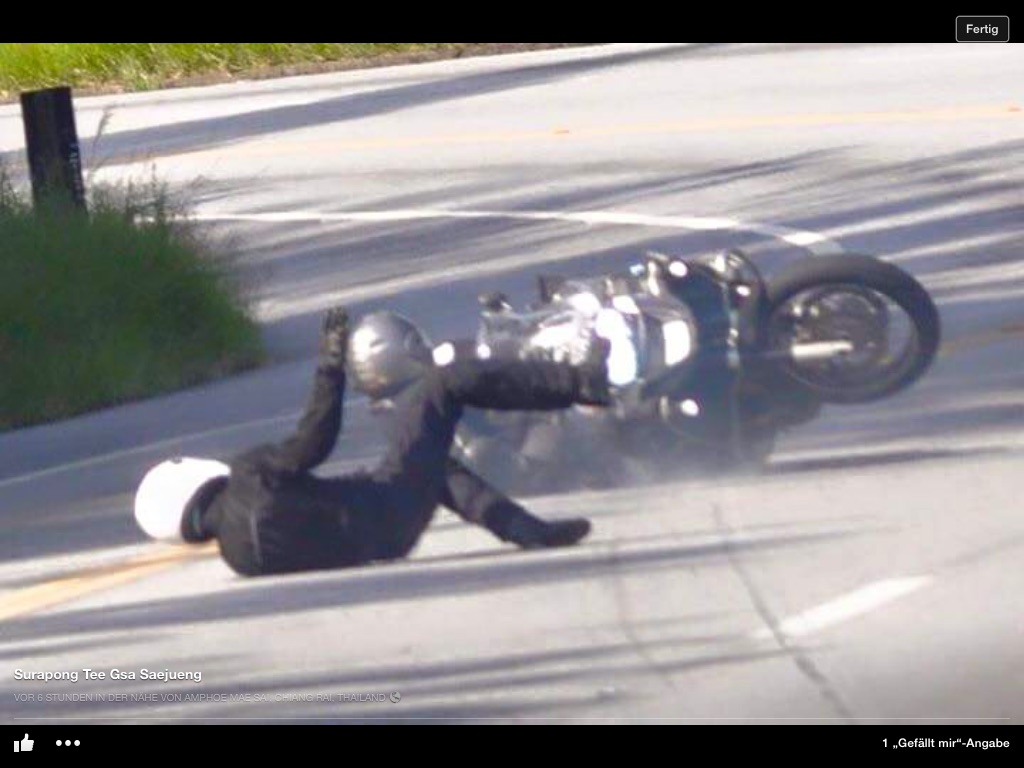 Zu 1: Kann gut sein, würde mir in diesem Moment aber nicht einfallen.Wenn vor einem einer einen Highsider macht und auf der Schnauze liegt, dann steig man aus und hilft.