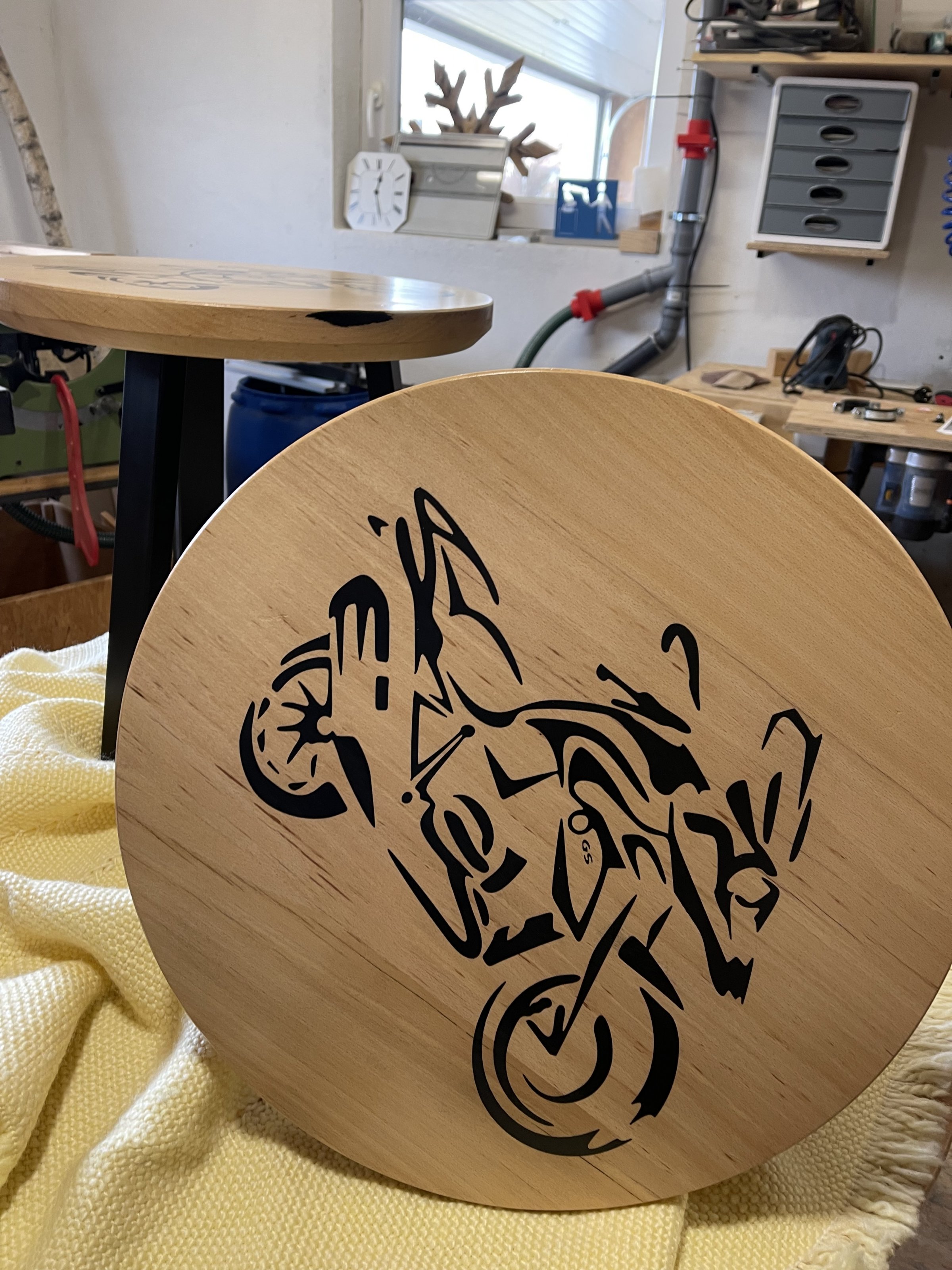 Motiv zeigt eine BMW GS ab 2013 - CNC gefräst und mit Holzkitt gefüllt - mit Hartwachsöl endbehandelt