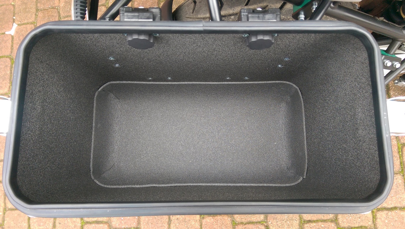 Die KOffer mit dem (von innen verschraubten) Haltesatz von TT direkt an den Träger geschraubt, spart viel Geld und das Abnehmen dauert auch nur ne Minute.