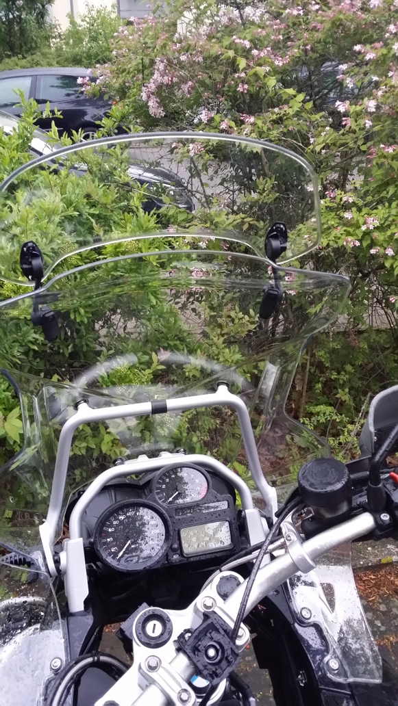 Vermutlich hatte es seinen Grund, warum BMW die Verstellbarkeit so beschnitten hat - er leuchtet mir nur noch nicht ein. Die Windlast ist z. B. mit MRA X-Screen bestimmt höher als mit manipuliert höher gestellter Scheibe.