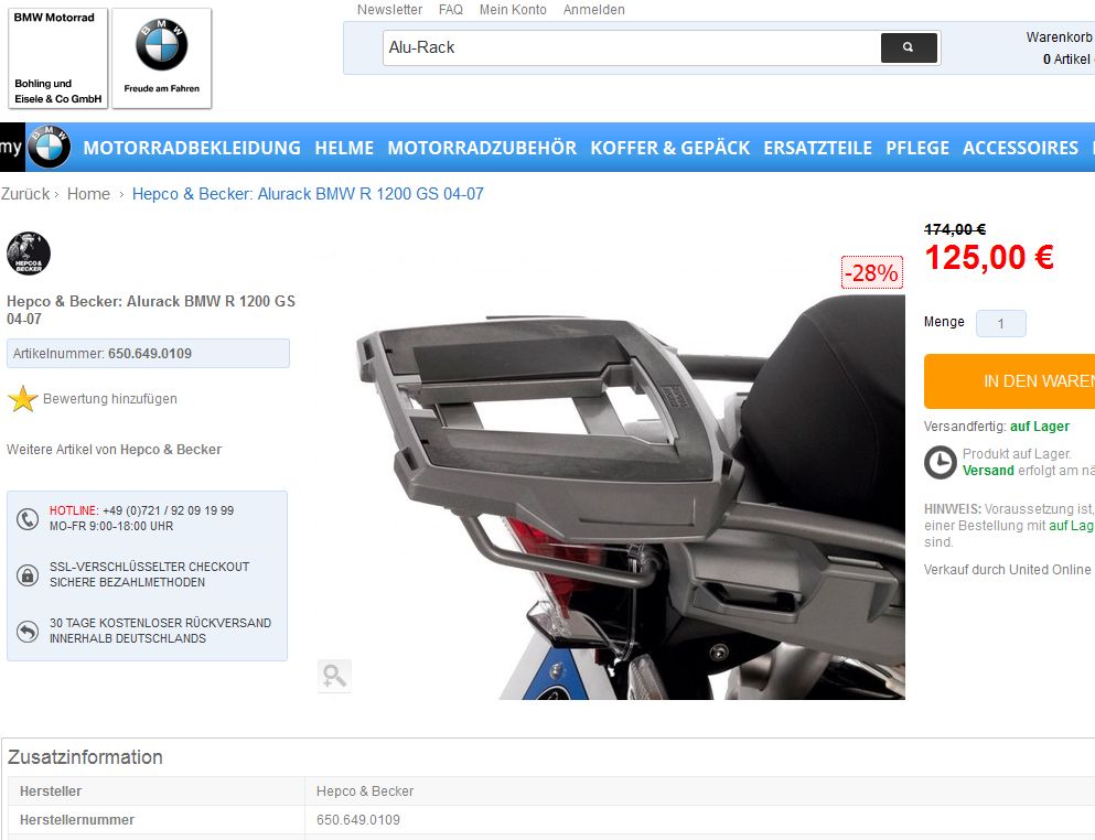 Weiß jemand, ob ich einen speziellen Träger brauche, den ich einfach nur auf die Original BMW Gepäckbrücke montiere? Oder kann ich die Originalbrücke überhaupt nicht nutzen und muss sie durch ein vollständiges Hepco&Becker-System ersetzen?