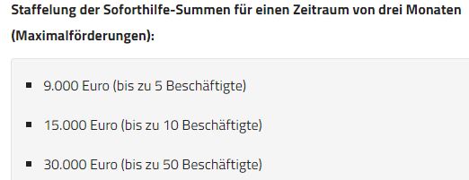Jetzt bekommt so ein Betrieb mit 5 Leuten (einschl. Chef sind es 6) 9.000 Euro für 3 Monate - also jeder 500 Euro im Monat.