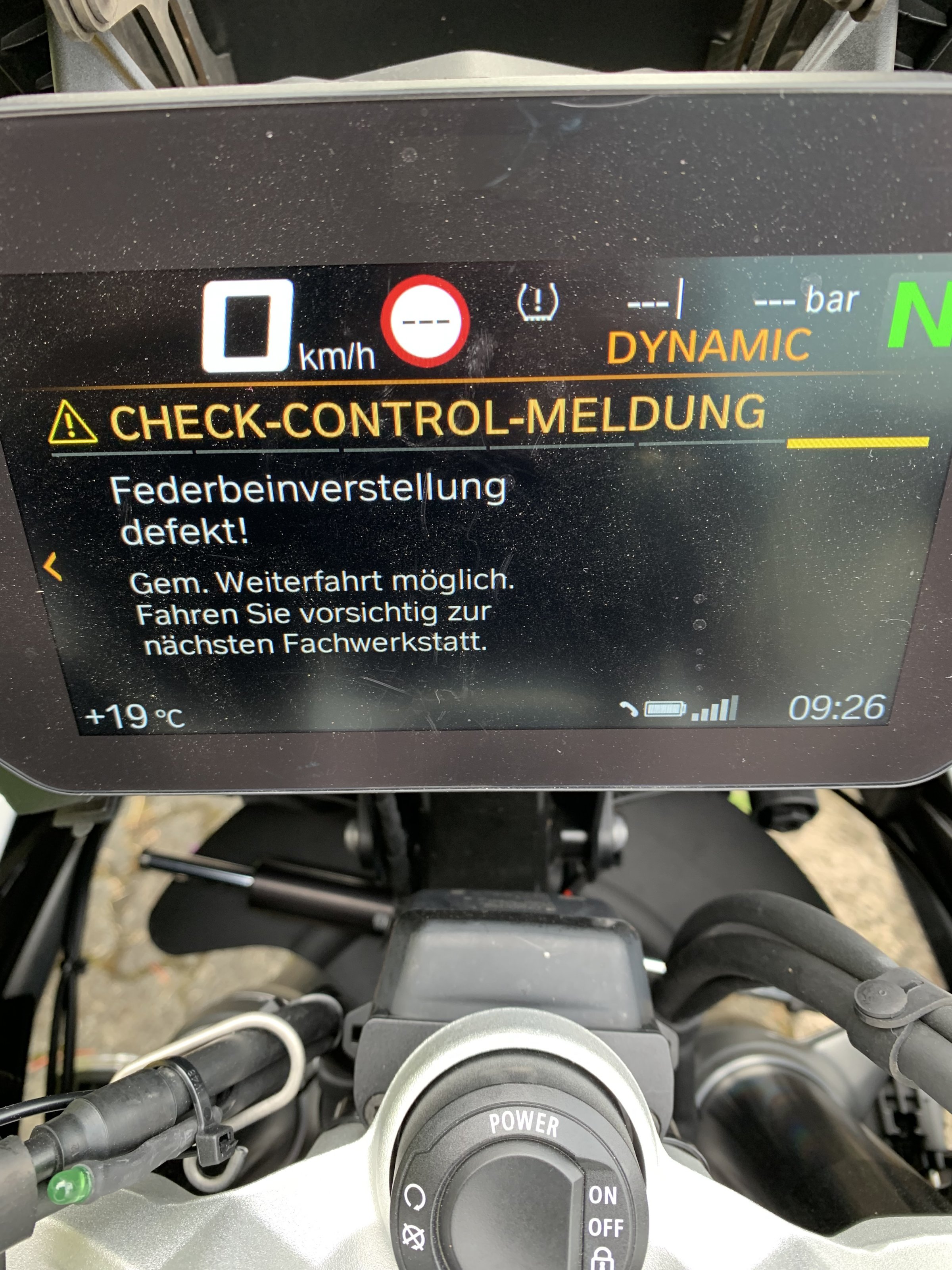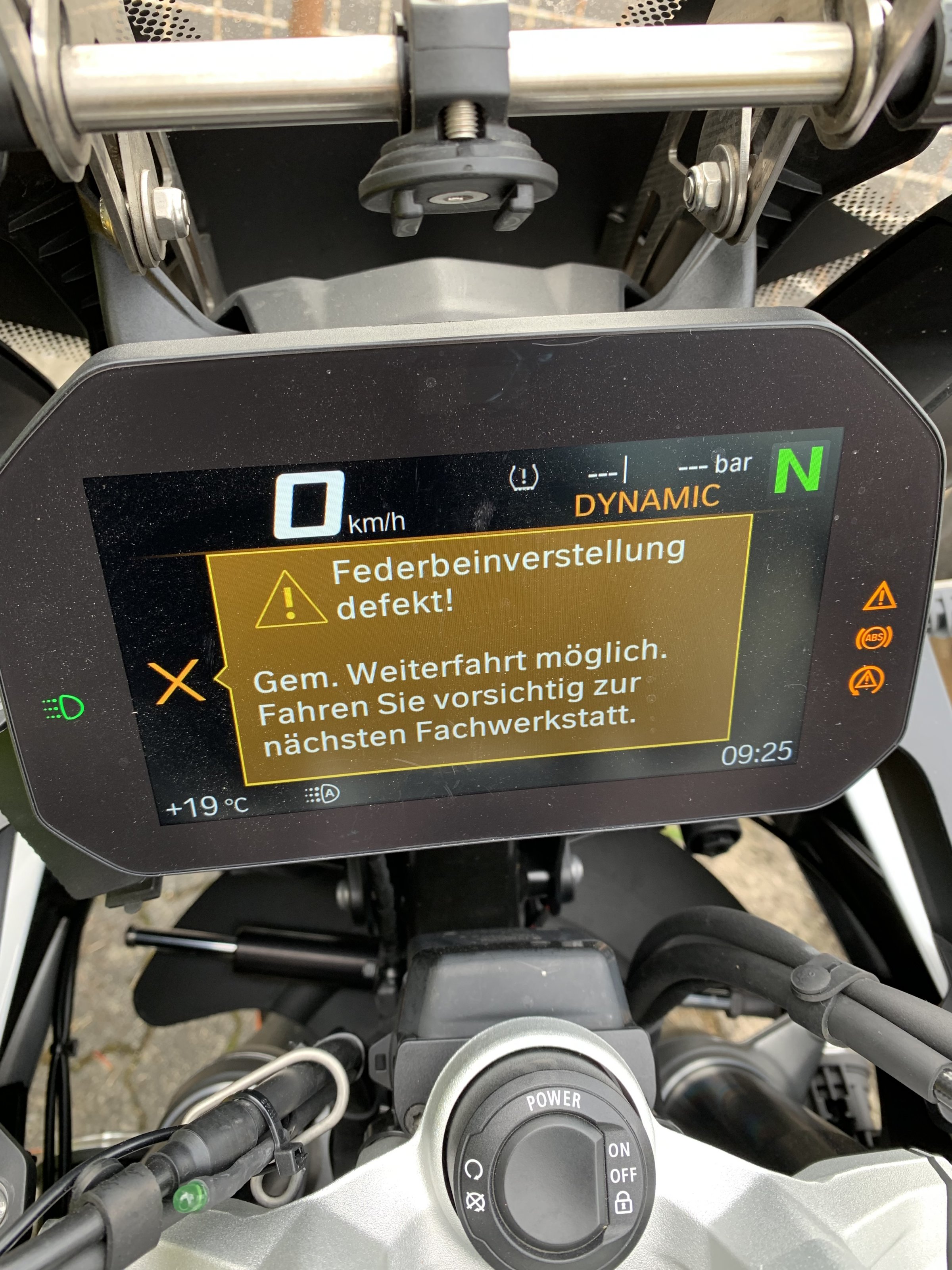 beim Start der Maschine sackte das Federbein ab und war Bretthart. Null Federung. Trotz mehrmaligem Aus und wieder einschalten egal ob auf Seitenständer oder Hauptständer blieb es fest. Wenn Du auf Tour einen Stopp gemacht hast und Du anschließend noch 100 km Heimweg hast so wie ich damals mit kaputtem Fahrwerk wirst du Irre 🤬😤
